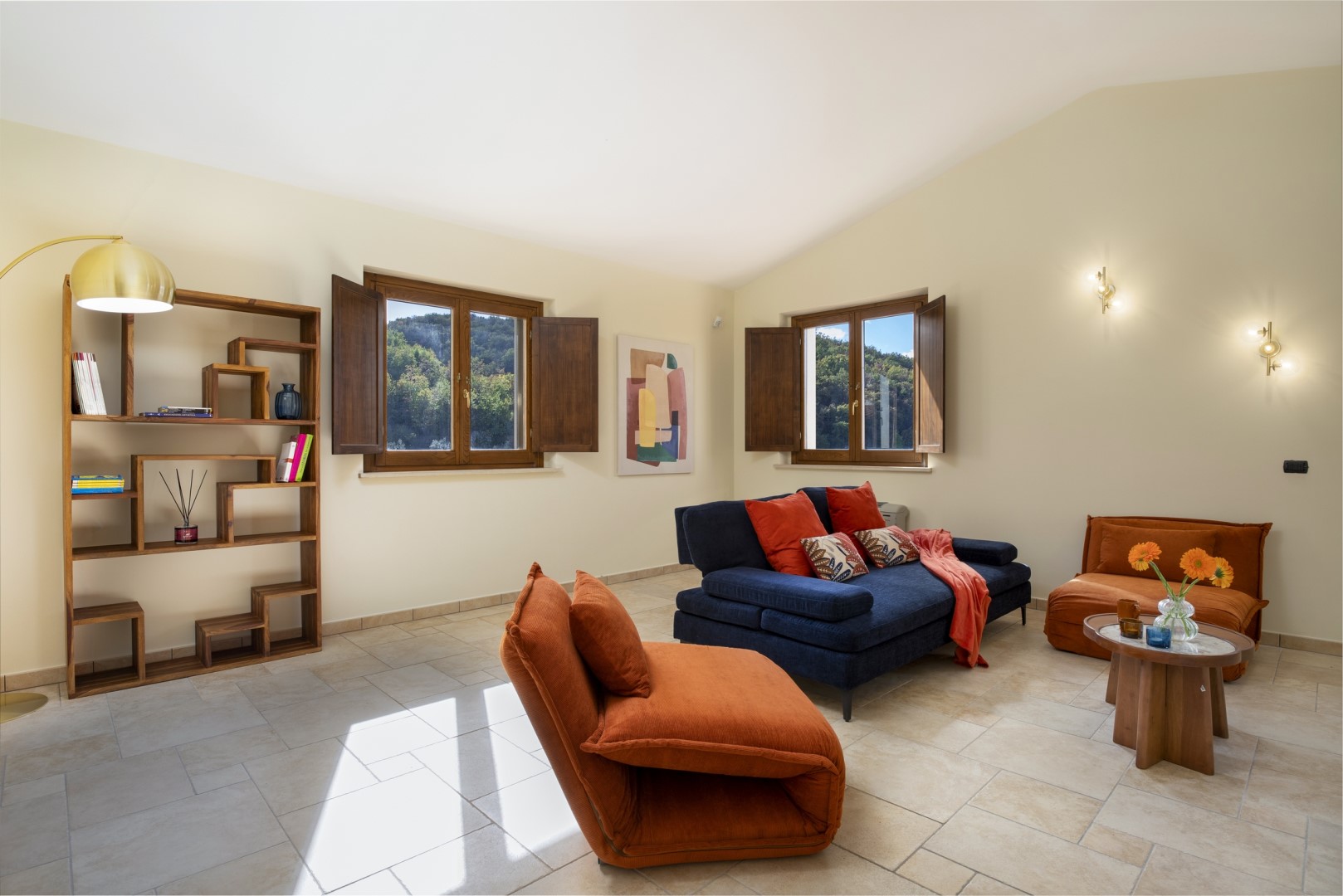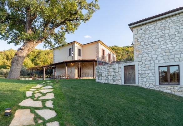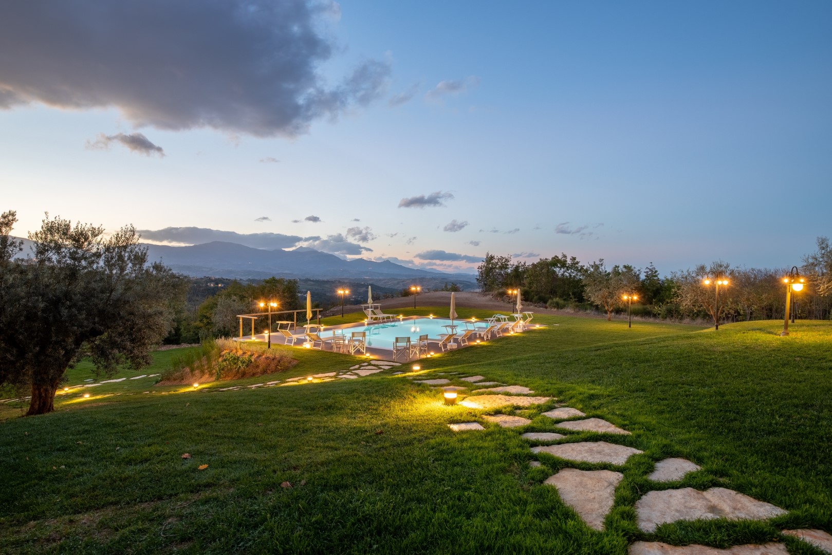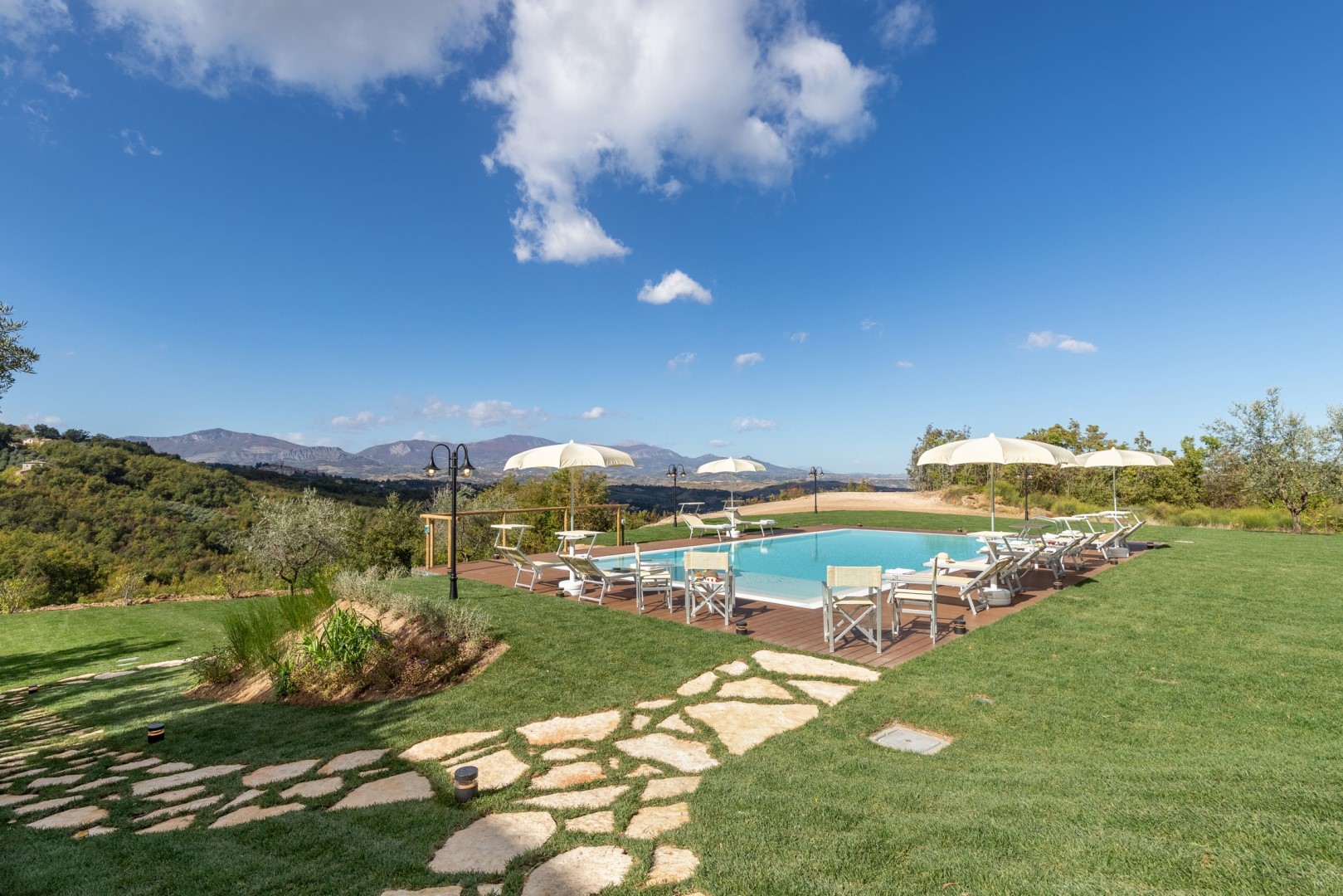 PRIVATE PROPERTY. Set in a quiet area with magnificent views of the Abruzzo mountains is Villa Cusano, a welcoming home with spacious interiors, carefully furnished in respect of the classic style of the villa. The property is composed of the main villa and an annex, which house the bedrooms, large living areas and a furnished portico for outdoor dining. The garden surrounds the property and features Mediterranean plants, large green lawns and olive groves. Completing this enchanting setting is an infinity pool inviting guests to relax while admiring the panorama that stretches to the horizon. Strategically located in Abbateggio, in the province of Pescara, Villa Cusano is the ideal choice for families and groups wishing to relax and explore the cultural gems of Abruzzo. Please Note: when property is rented in this solution no other guest will be present on site.