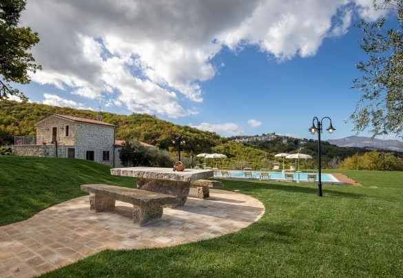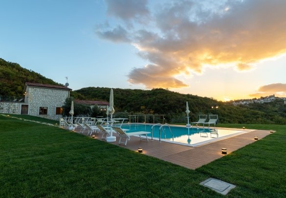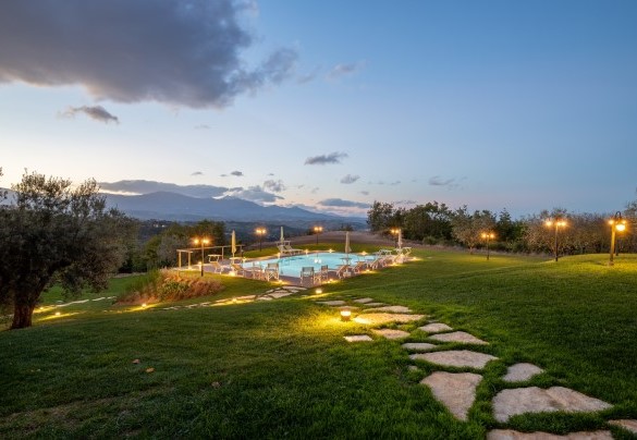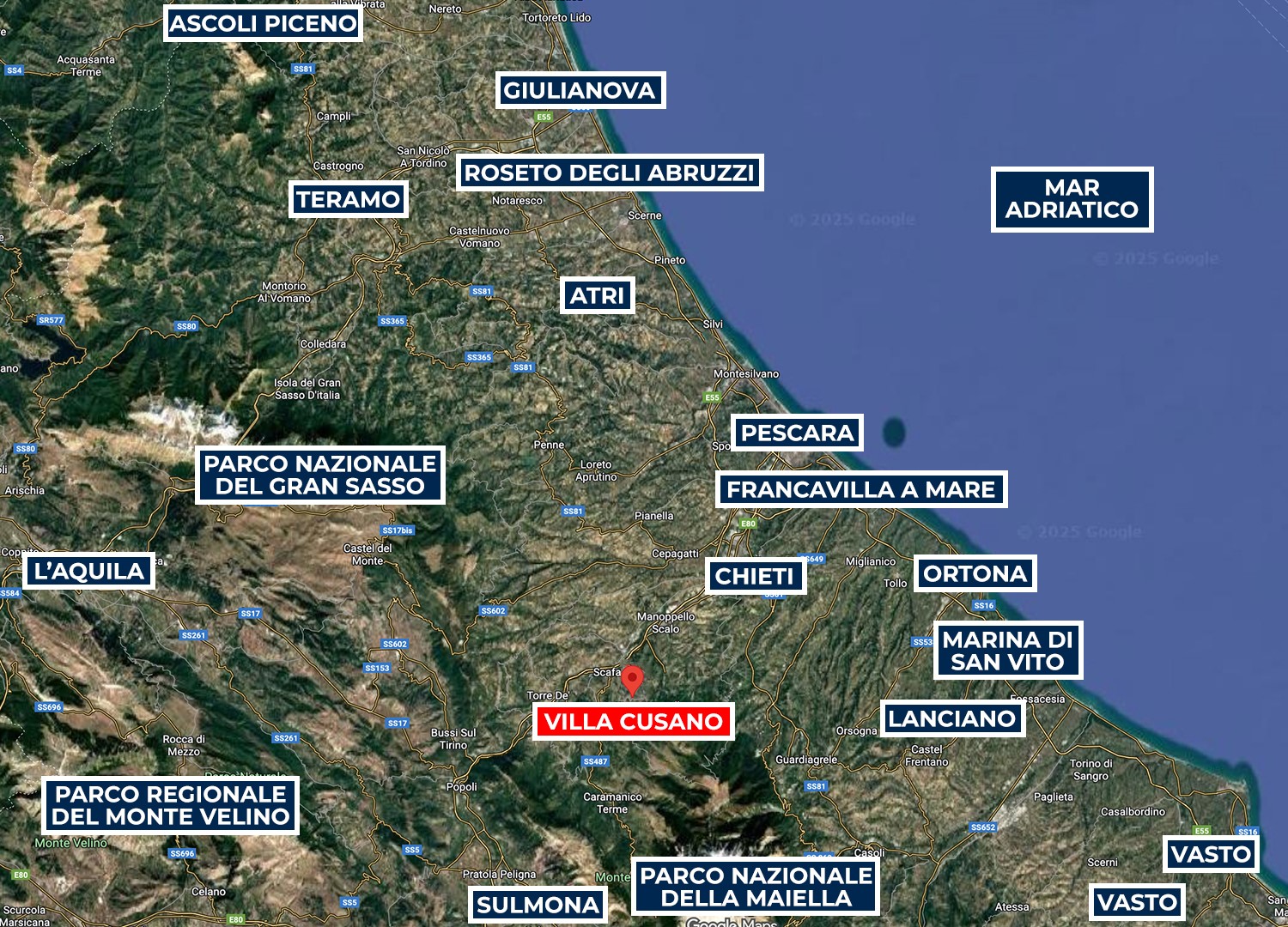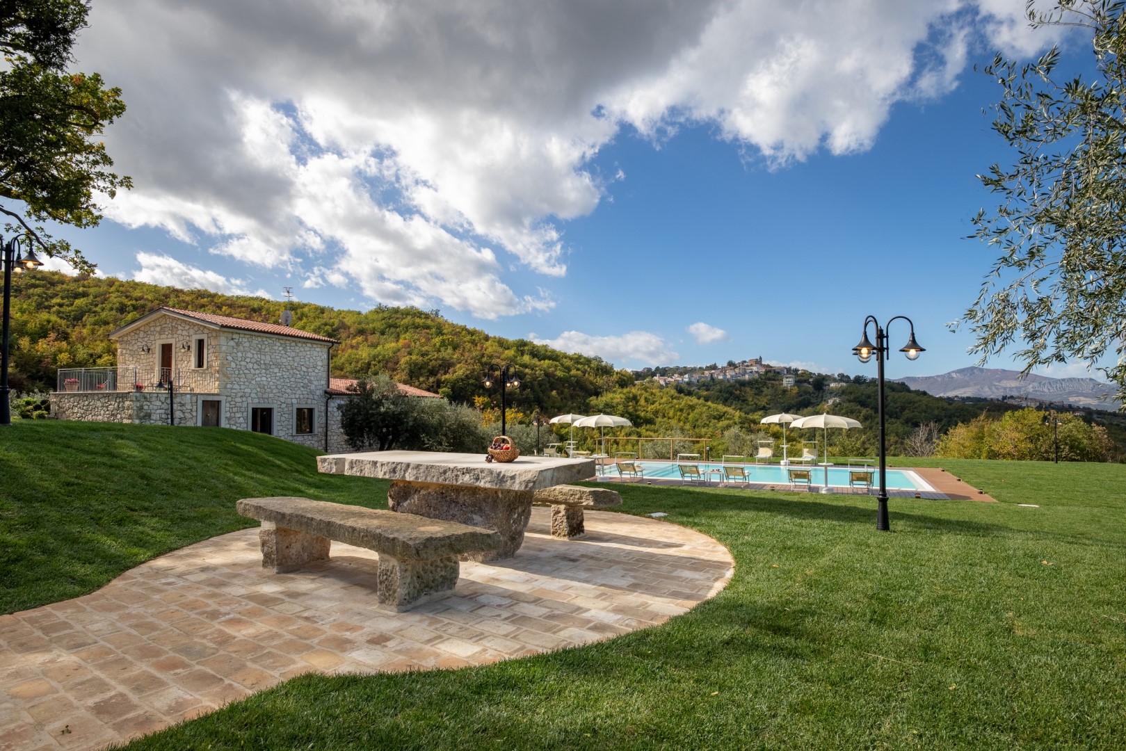 PRIVATE PROPERTY. Set in a quiet area with magnificent views of the Abruzzo mountains is Villa Cusano, a welcoming home with spacious interiors, carefully furnished in respect of the classic style of the villa. The property is composed of the main villa and an annex, which house the bedrooms, large living areas and a furnished portico for outdoor dining. The garden surrounds the property and features Mediterranean plants, large green lawns and olive groves. Completing this enchanting setting is an infinity pool inviting guests to relax while admiring the panorama that stretches to the horizon. Strategically located in Abbateggio, in the province of Pescara, Villa Cusano is the ideal choice for families and groups wishing to relax and explore the cultural gems of Abruzzo. Please Note: when property is rented in this solution no other guest will be present on site.