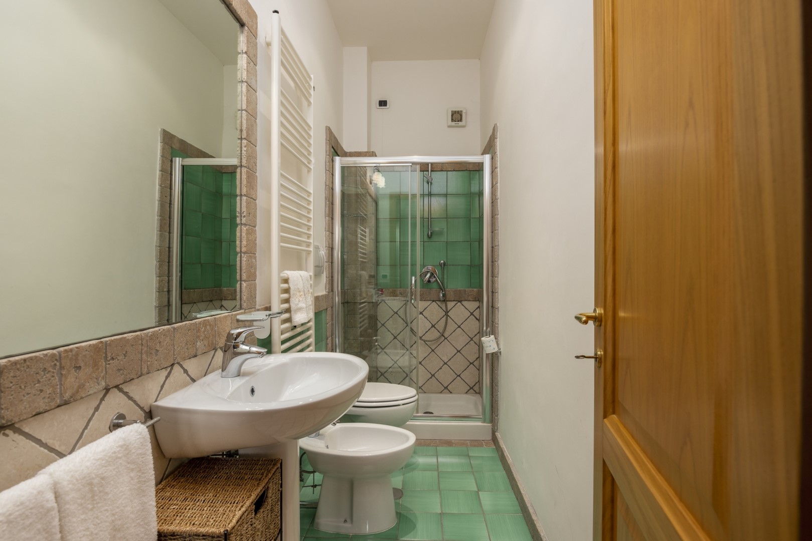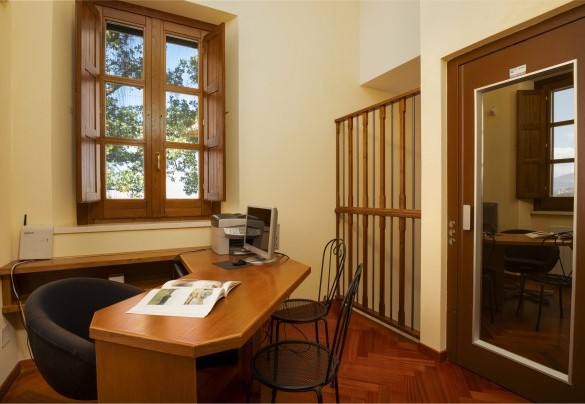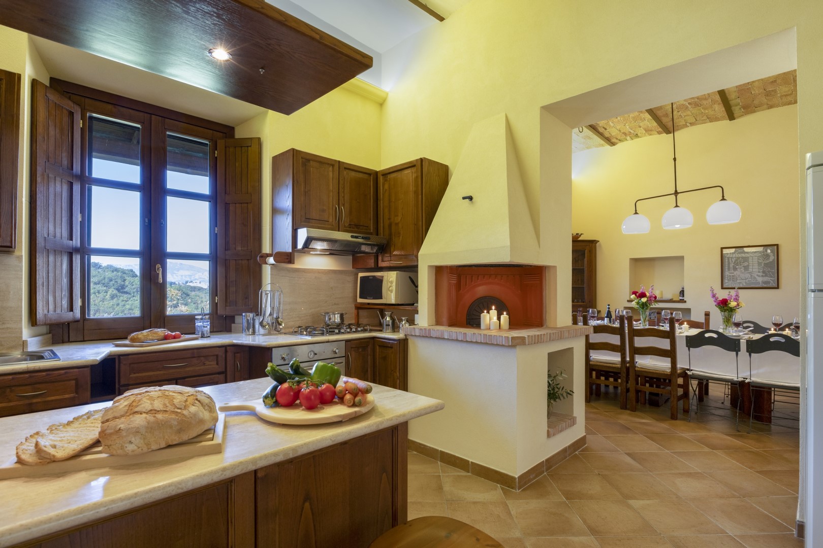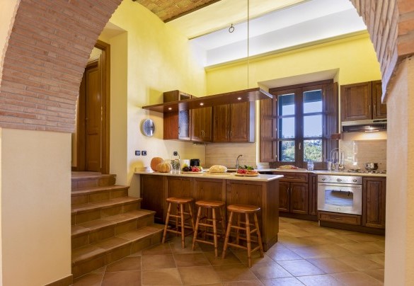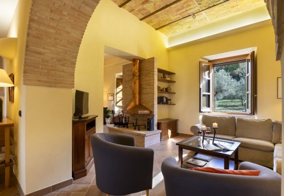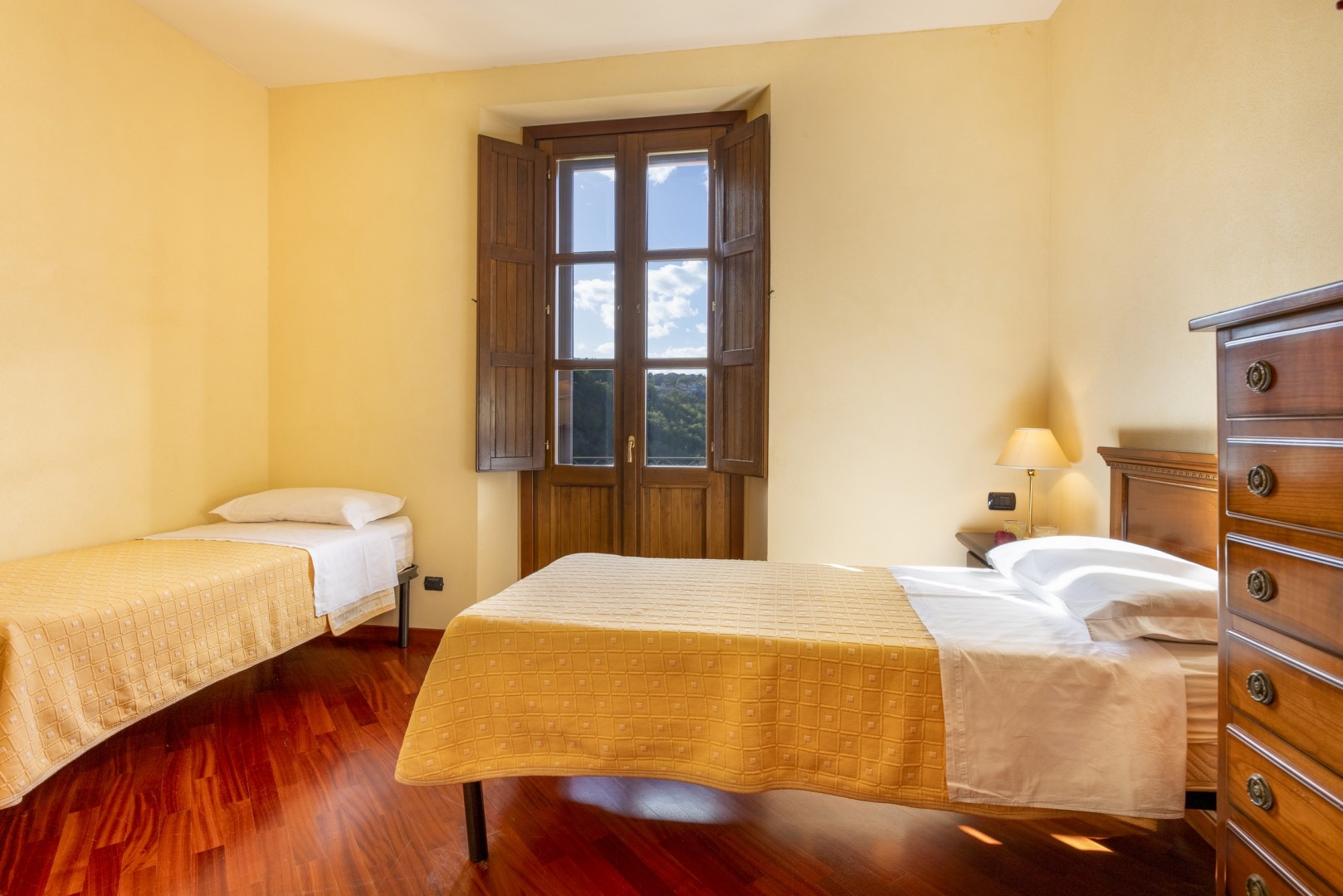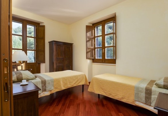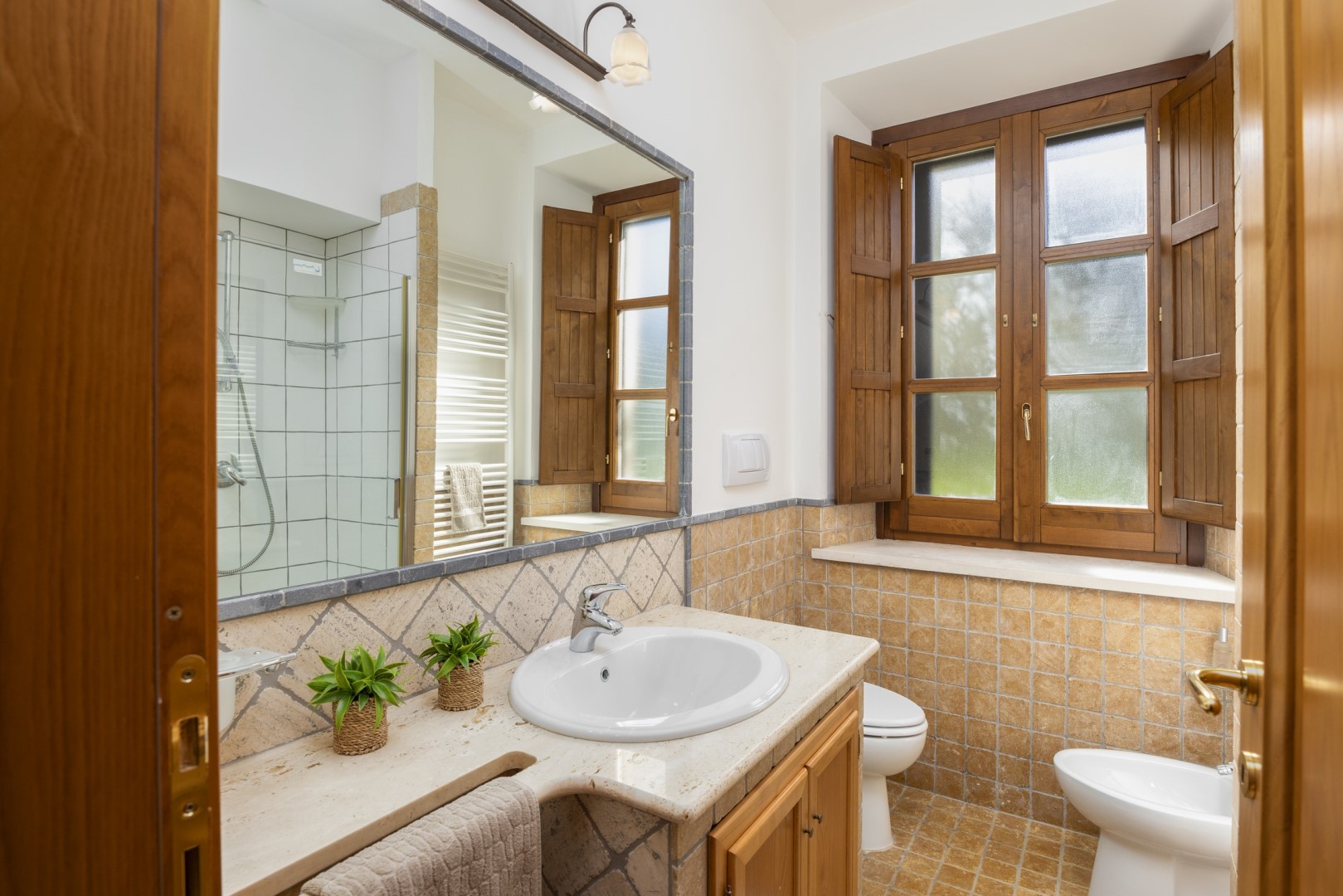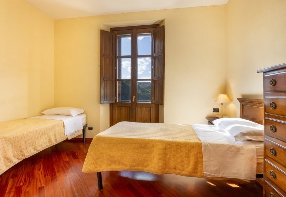 Villa Cusano is located at an altitude of 405 metres above sea level. The garden, of about 4,000 sq m, slopes gently down from the main villa towards the pool and annex, with green lawns and olive trees taking centre stage and framing the outdoor living areas. A furnished portico, located near the entrance to the villa, provides a shaded area ideal for outdoor dining with a barbecue located nearby. Various relaxation areas invite guests to relax and unwind, surrounded by nature. The property includes a large outdoor parking area that can accomodate about ten cars.