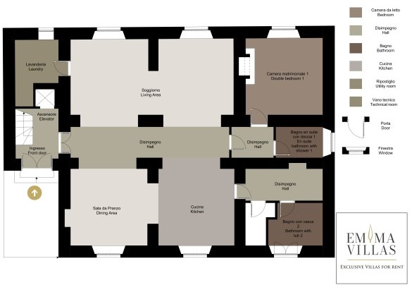 Please notice that photos are taken in spring, therefore flower blossoming, and the colours of the gardens' grass could be different at the moment of your arrival at the villa.
