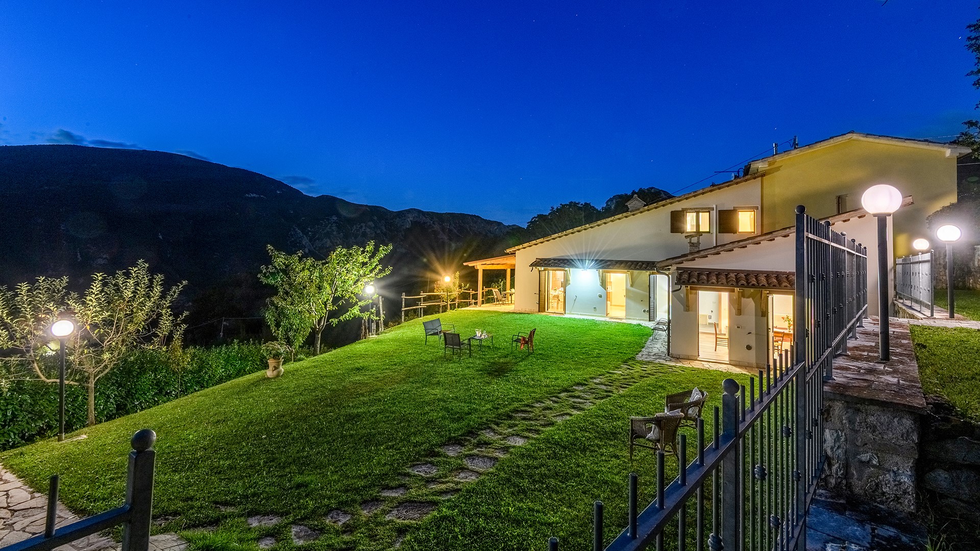 Please notice that photos are taken in spring, therefore flower blossoming, and the colours of the gardens' grass could be different at the moment of your arrival at the villa.
