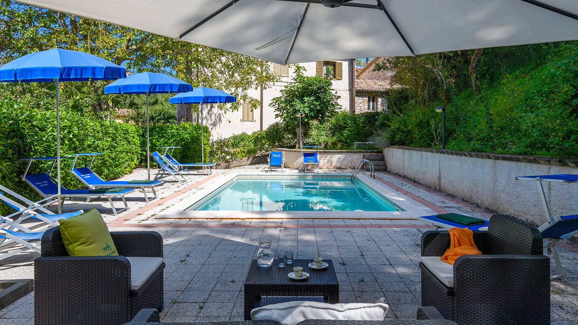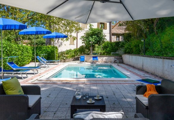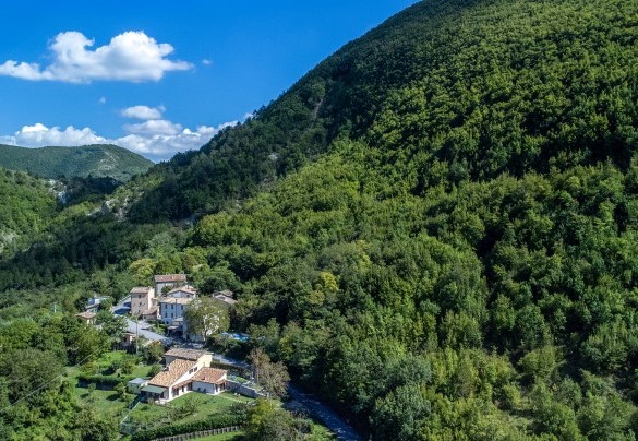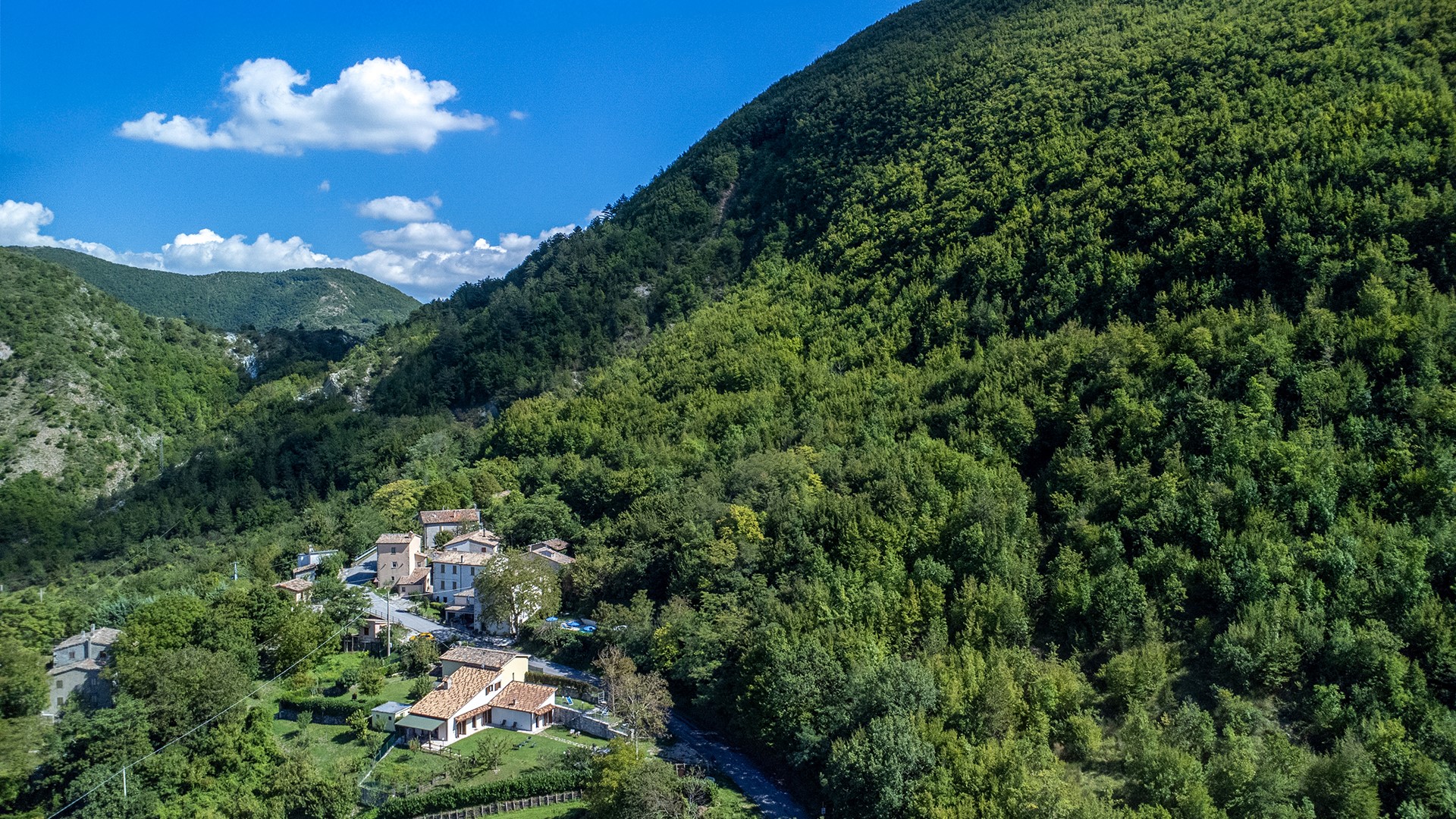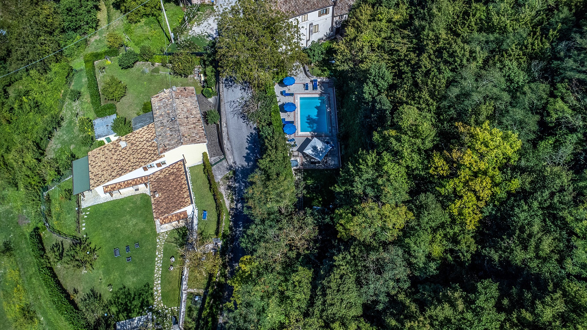 RECEPTIVE STRUCTURE. This modern villa is situated in the small hamlet of Acquanera, in an elevated position surrounded by forested hills. Featuring three-bedrooms, a private pool, a terraced, lawned garden, and open-plan interiors, it is ideal for small groups and couples. The well-equipped kitchen, with an island, dining area, and lounge with a fireplace, serves as the central gathering space. Large windows provide direct access to the garden, where guests can enjoy magnificent views of the surrounding landscape. We are at the foot of Mount Nerone, which offers the possibility to go on naturalistic itineraries and have an active vacation: hiking, trekking, horseback riding, canoeing, fishing, and other sports in contact with nature.