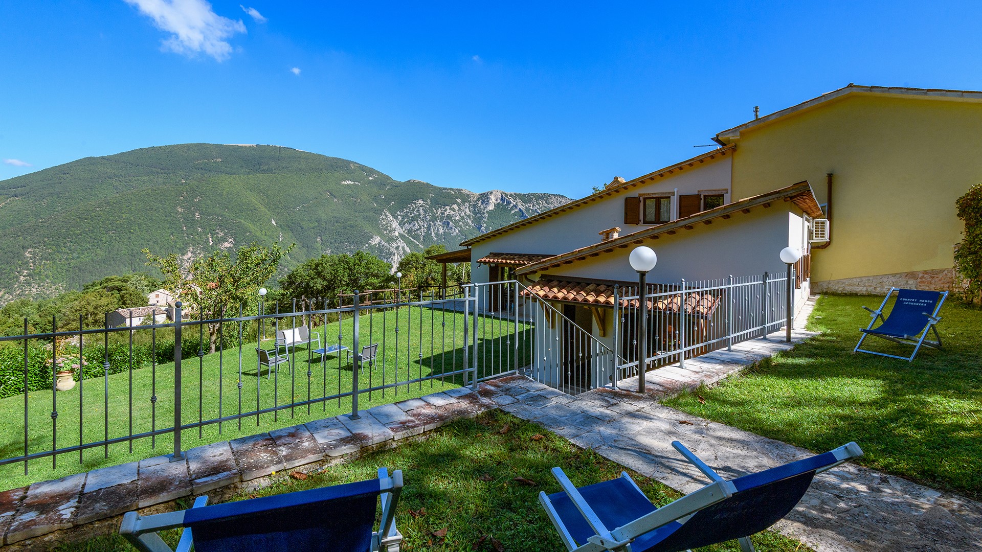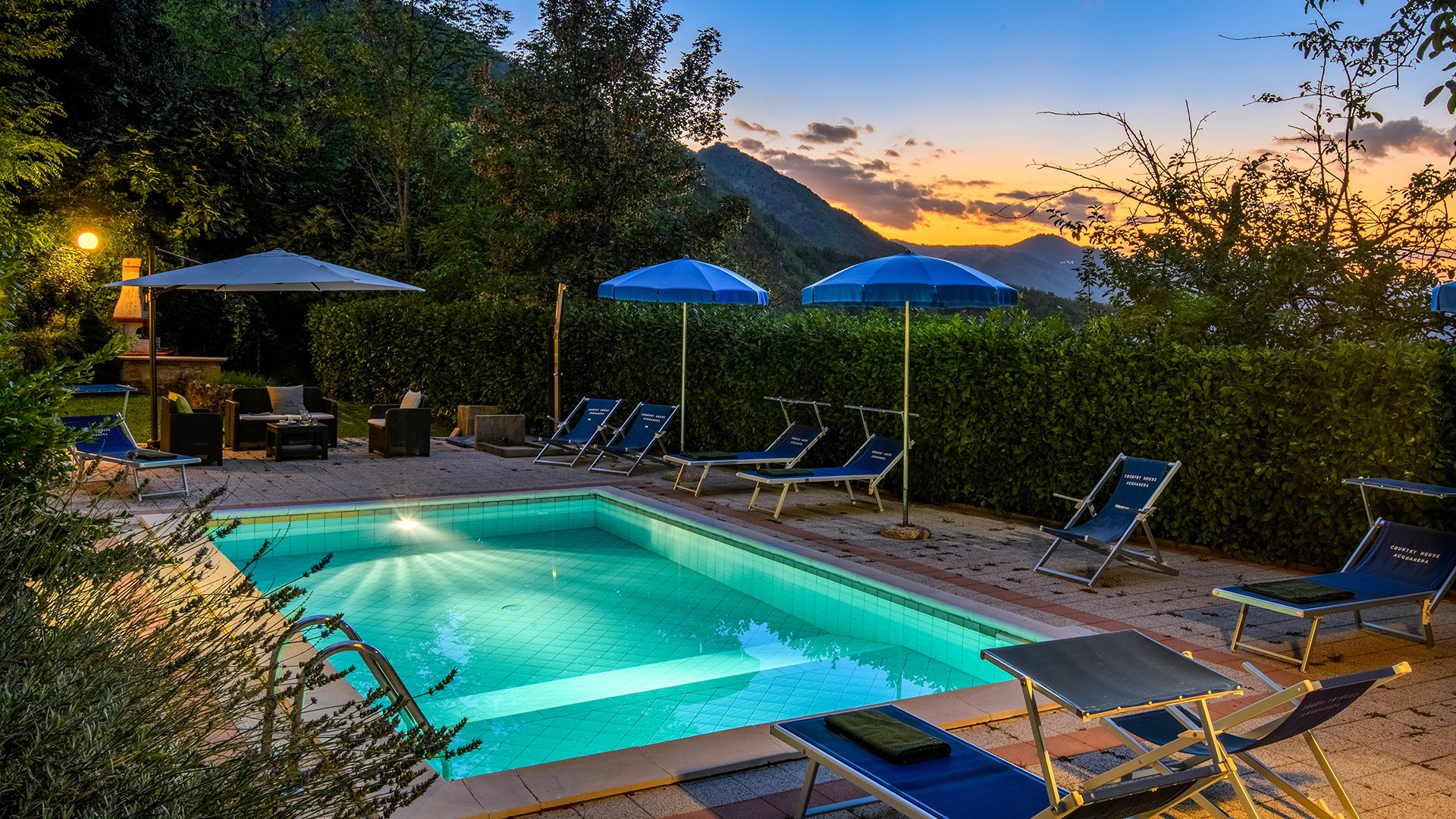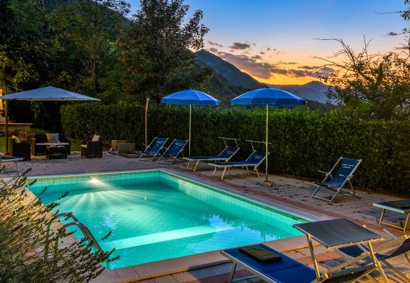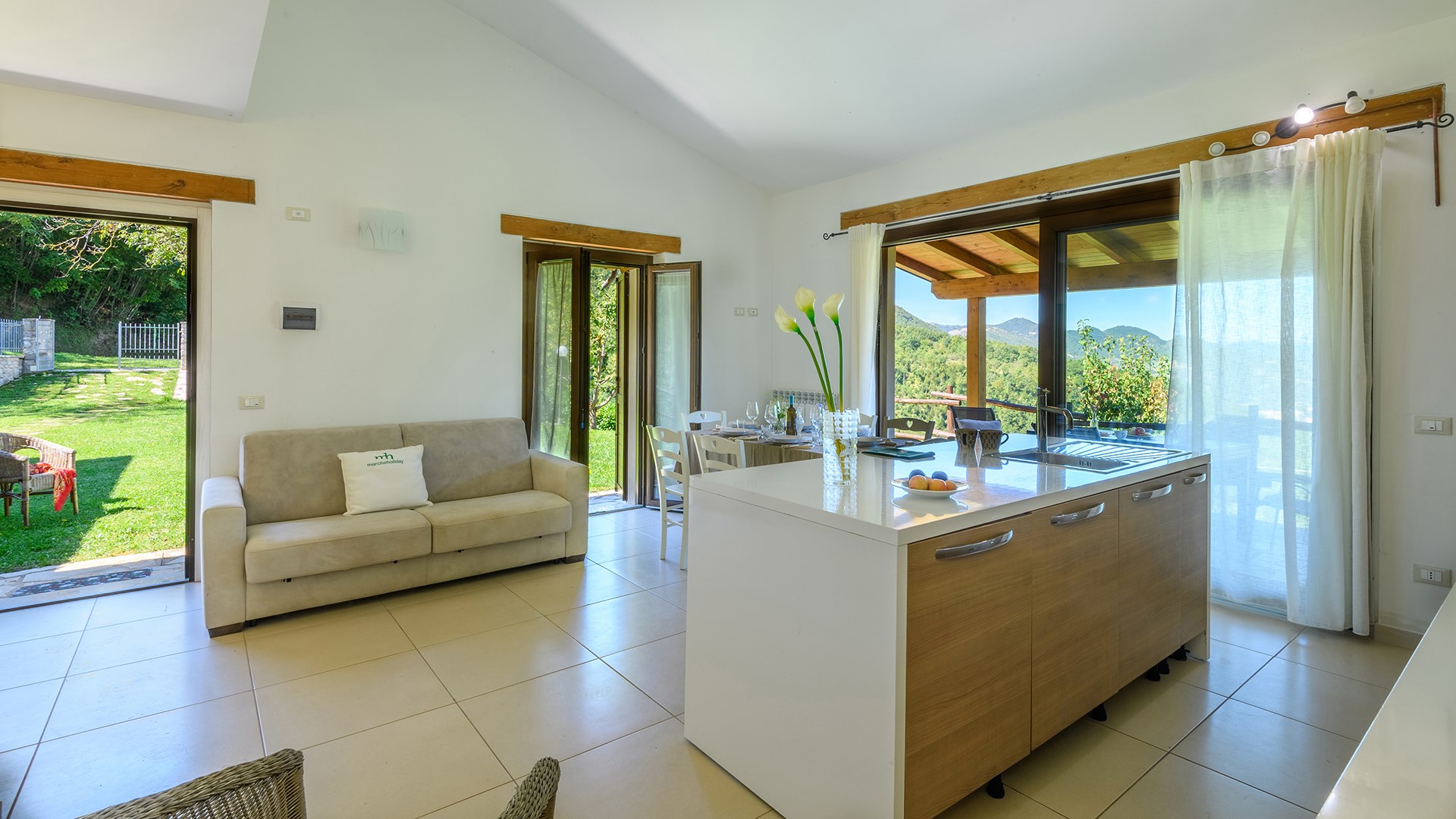 RECEPTIVE STRUCTURE. This modern villa is situated in the small hamlet of Acquanera, in an elevated position surrounded by forested hills. Featuring three-bedrooms, a private pool, a terraced, lawned garden, and open-plan interiors, it is ideal for small groups and couples. The well-equipped kitchen, with an island, dining area, and lounge with a fireplace, serves as the central gathering space. Large windows provide direct access to the garden, where guests can enjoy magnificent views of the surrounding landscape. We are at the foot of Mount Nerone, which offers the possibility to go on naturalistic itineraries and have an active vacation: hiking, trekking, horseback riding, canoeing, fishing, and other sports in contact with nature.