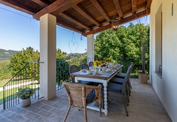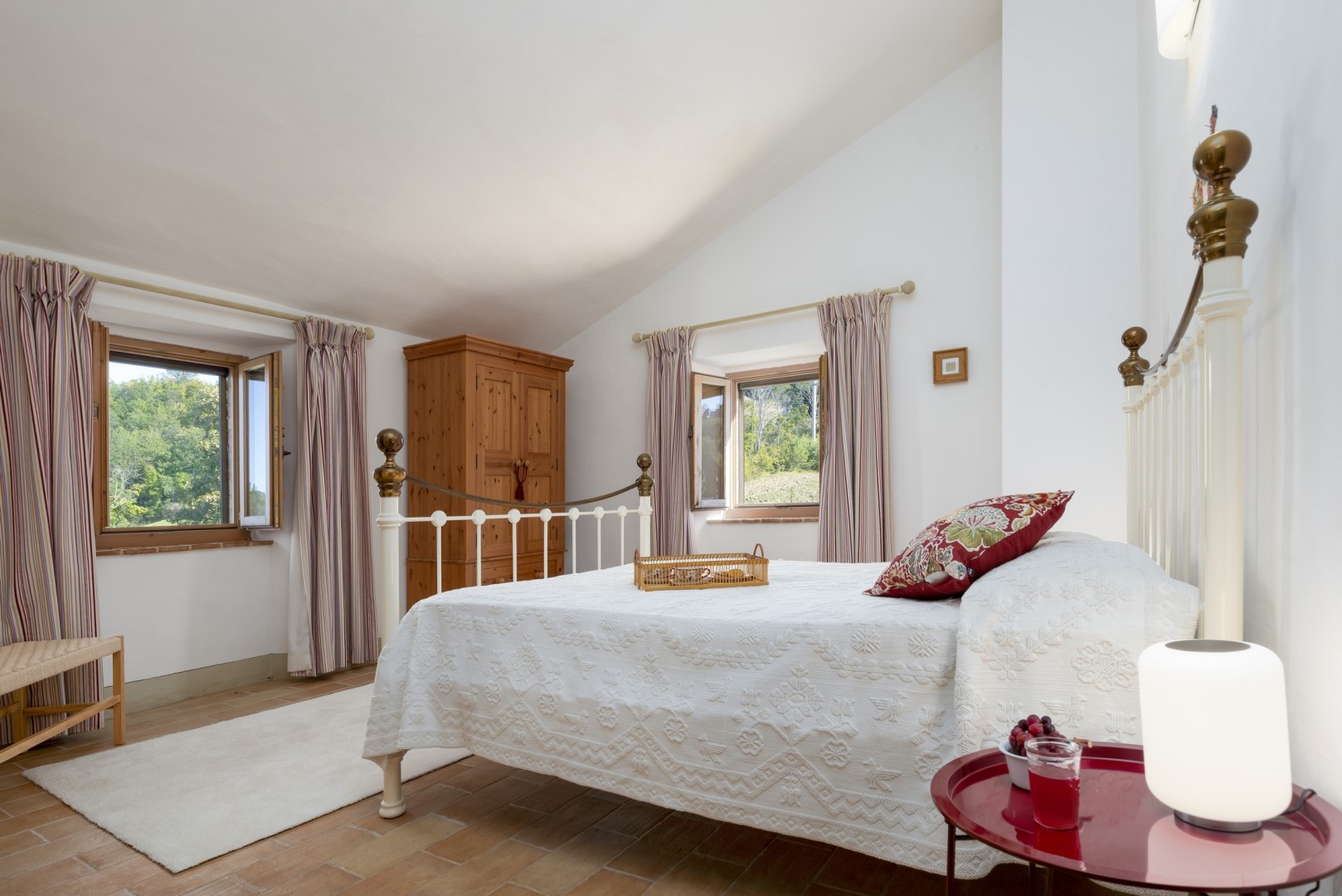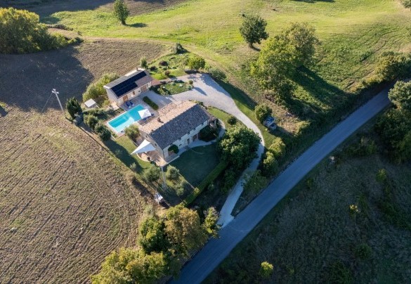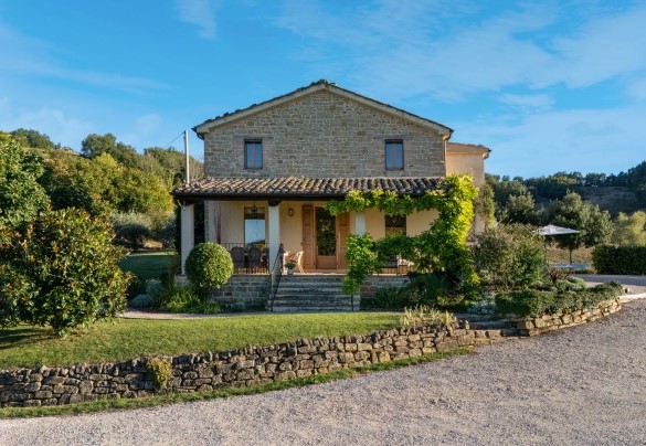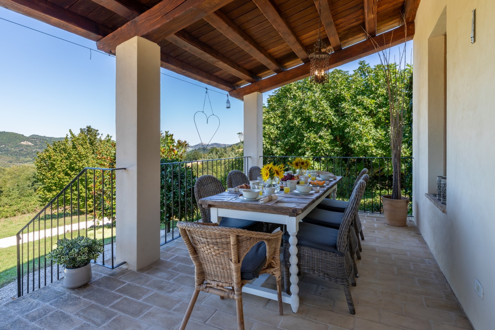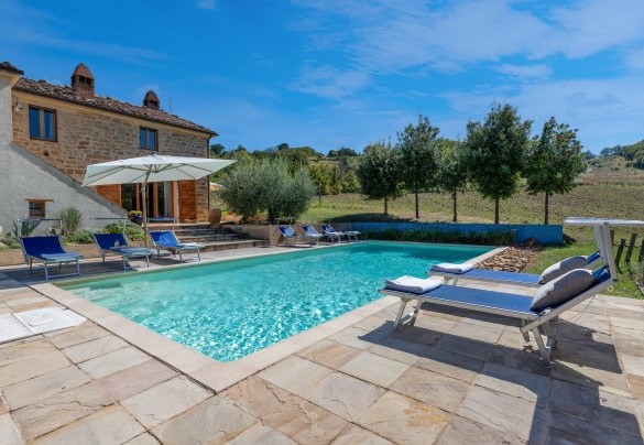 PRIVATE STRUCTURE (lease only). Casale La Cascina is an old and welcoming, renovated stone house situated on a hill with open views over the green Marche countryside and a breathtaking panorama of the Monti Sibillini. The two-storey farmhouse includes four bedrooms, a bright living area and a kitchen with dining area connected to a portico organised for al fresco dining. The well-kept garden surrounding the property features olive trees, hedges and tall trees. Completing this enchanting setting is a salt-purified swimming pool that invites guests to relax while admiring the endless view: a perfect setting for regenerating body and spirit, immersed in the rhythms of nature. The strategic location offers easy access to the cultural and natural attractions of the Marche region. Note: The property includes a private annex which will remain unoccupied during the guests' stay.