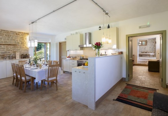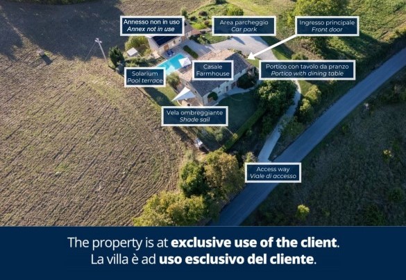 Please notice that photos are taken in spring, therefore flower blossoming, and the colours of the gardens' grass could be different at the moment of your arrival at the villa.