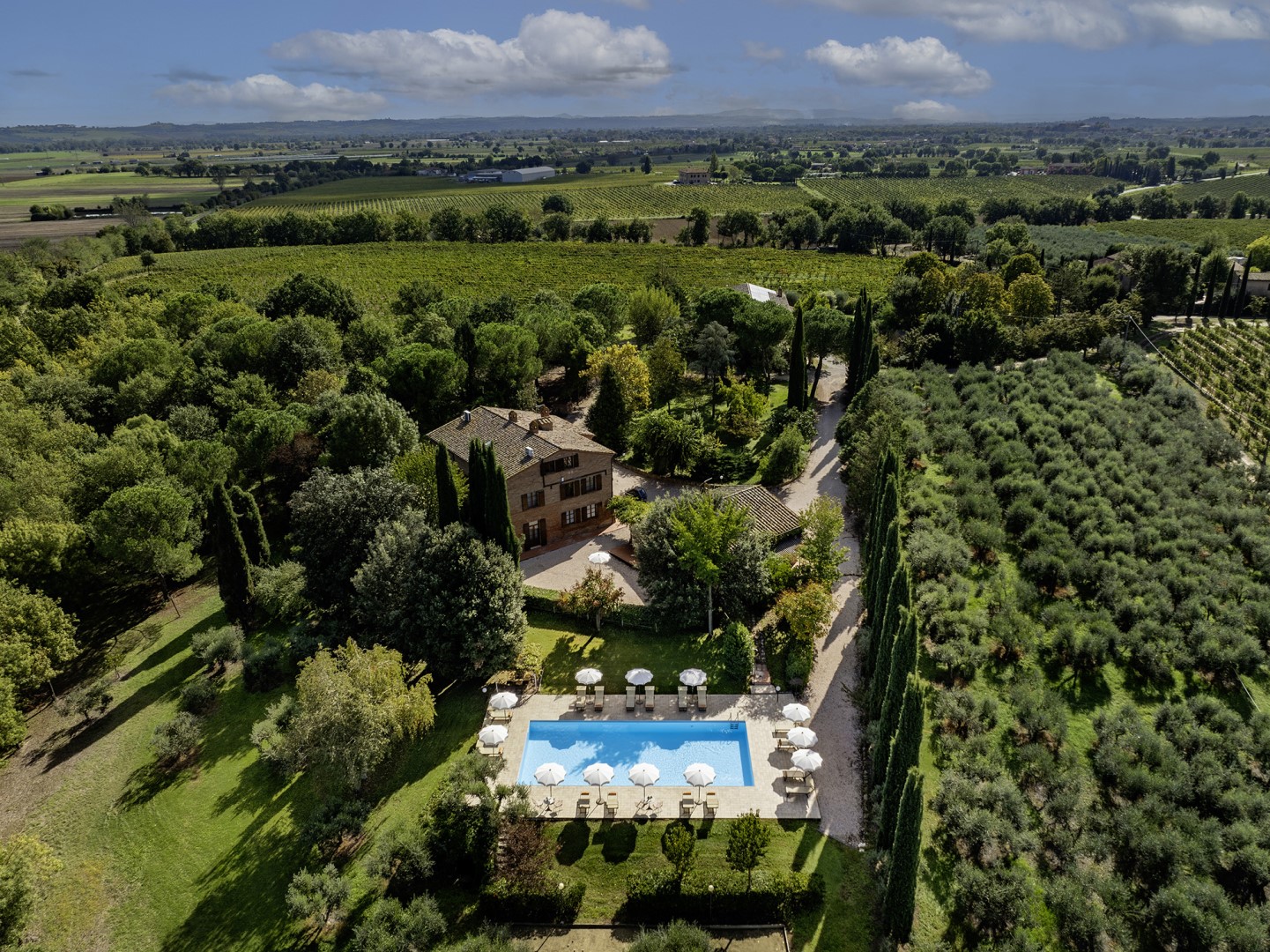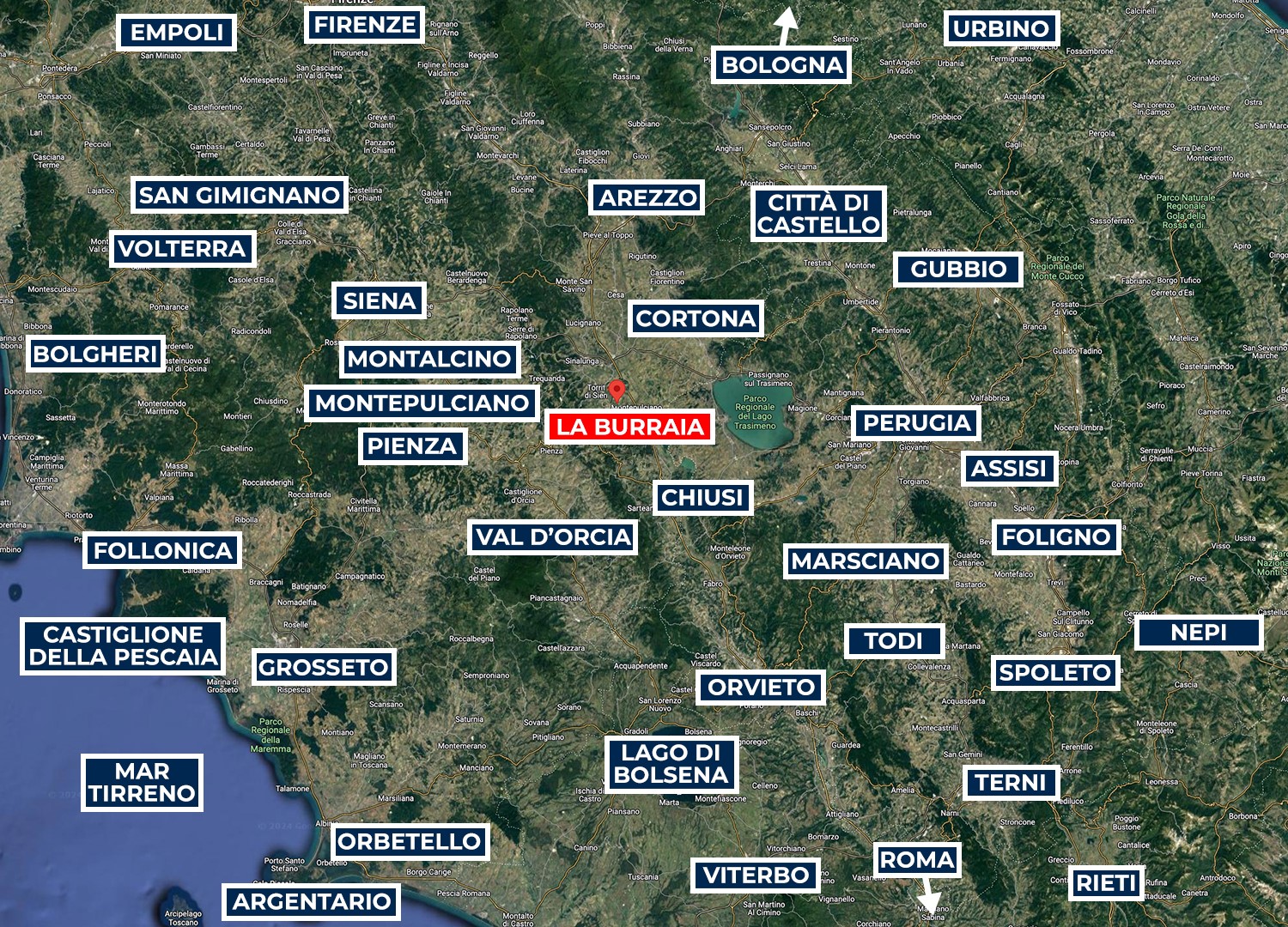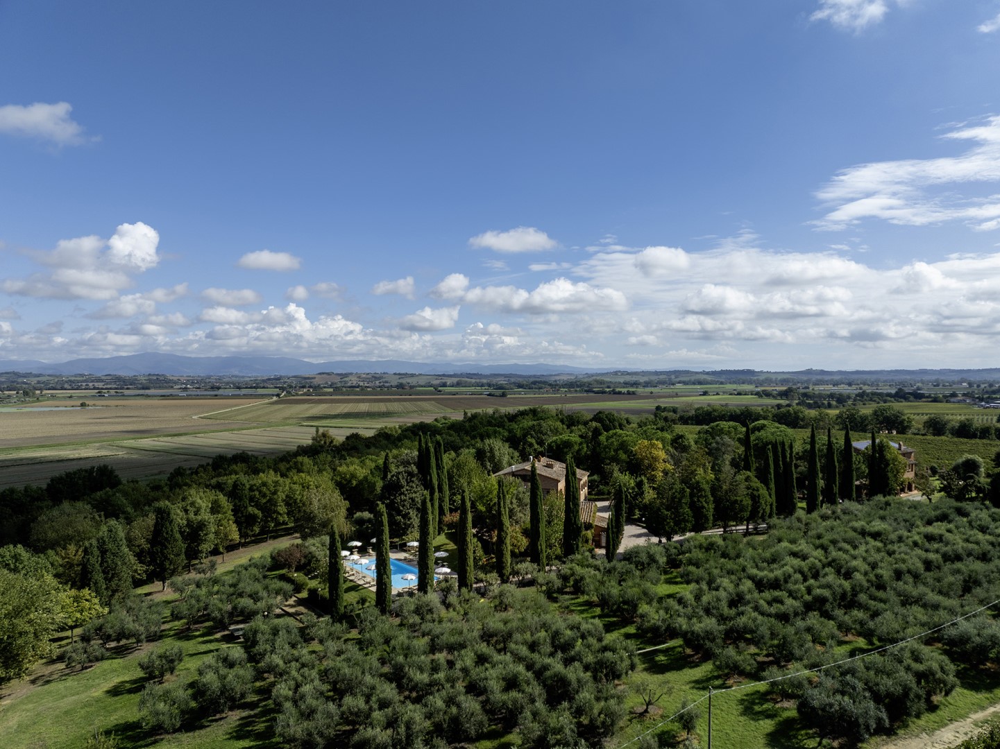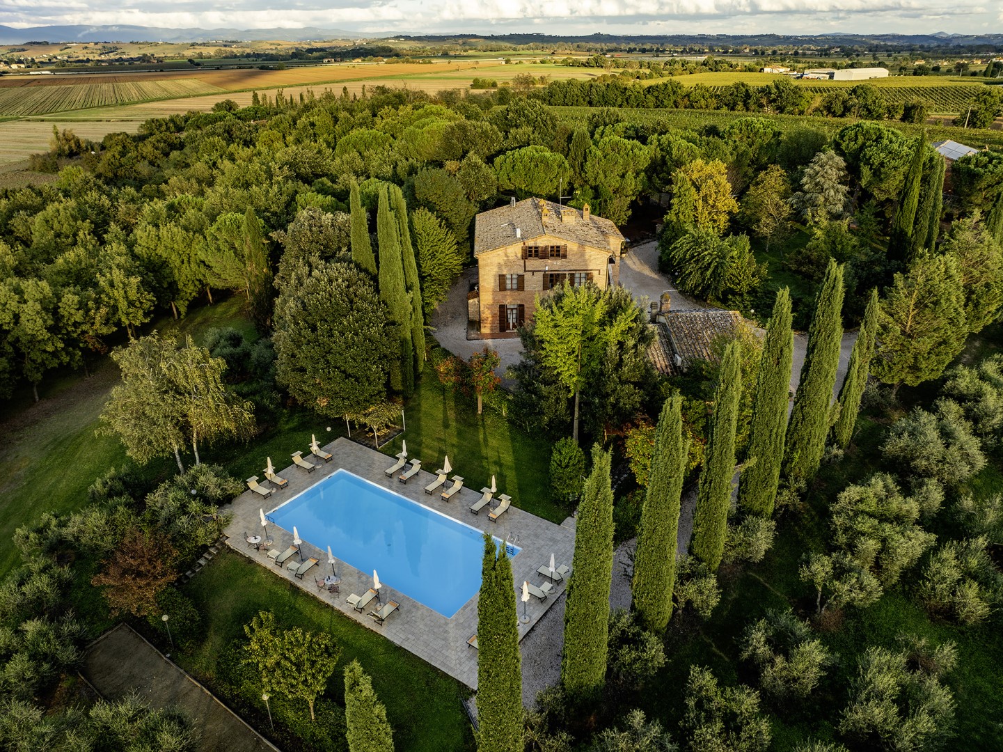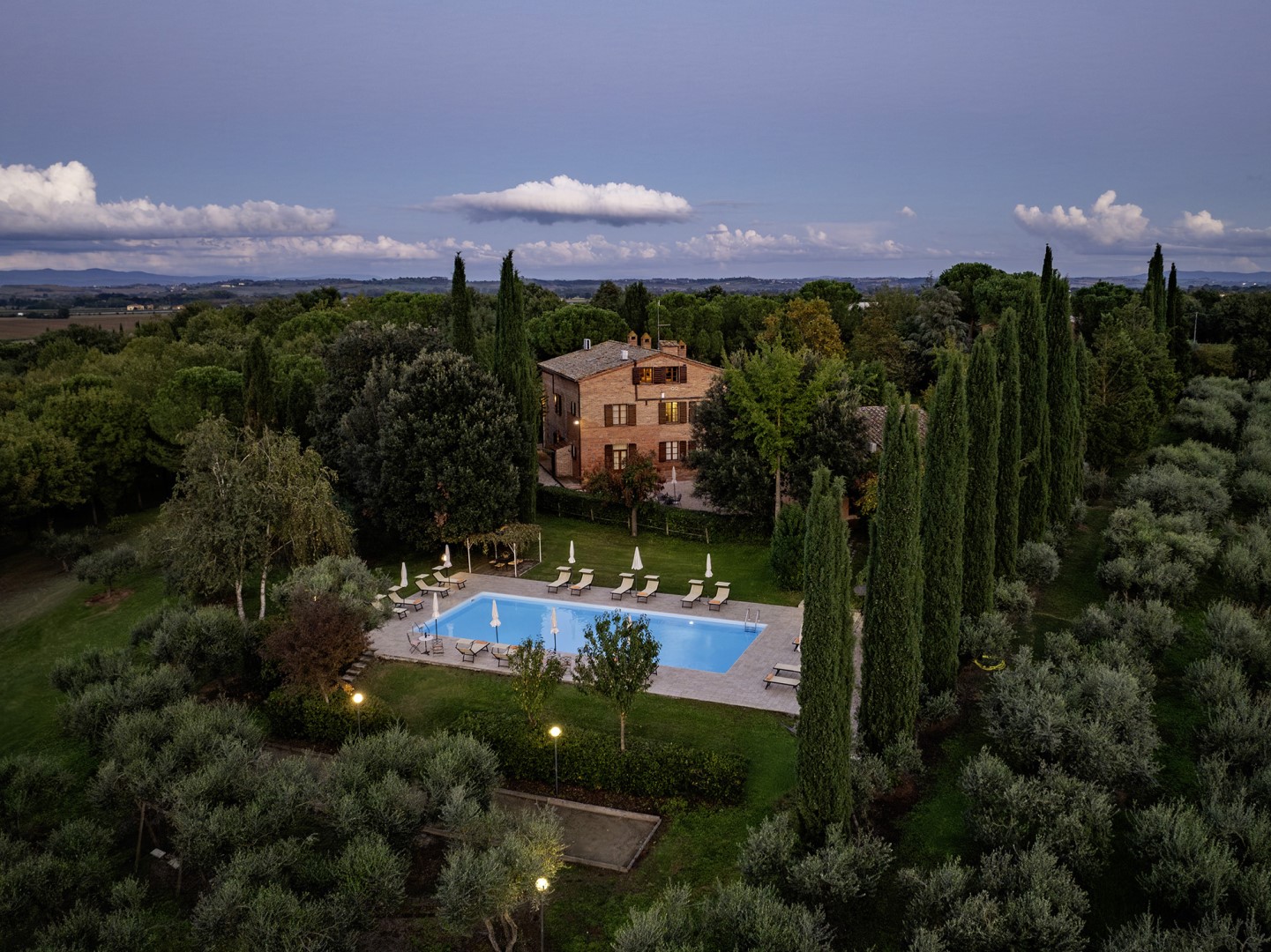 La Burraia is located in the Tuscan countryside south of the province of Siena, in a panoramic position between the Valdichiana and the Val d'Orcia, two of the most iconic landscapes of the region. Surrounded by rolling hills, vineyards and olive groves, it enjoys an ideal natural setting for those seeking a stay in contact with nature while still being close to major attractions; services and shops are easily accessible in the nearby towns of Torrita di Siena, Abbadia di Montepulciano and Montepulciano. Pienza, Cortona and other historic towns rich in art and tradition, in food and wine culture are just a short distance away, while cities of art such as Siena, Arezzo and Florence are easily accessible for day trips, thanks to the proximity of fast roads and motorway links.