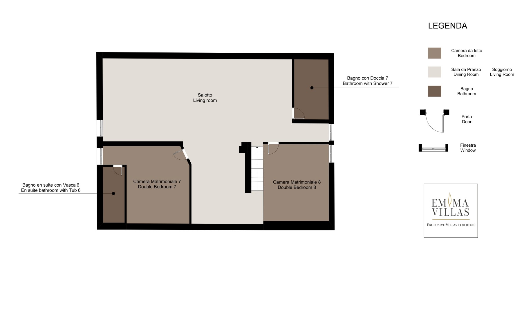 (MAIN HOUSE: 5 doubles, 1 1 double with divisible bed, 2 2 doubles with king size bed. ANNEX: 1 double)