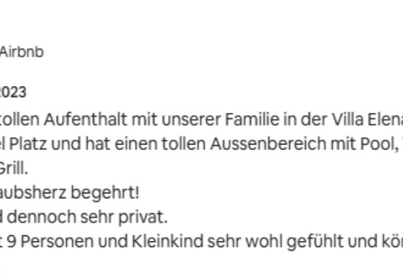 Wonderfull view, very nice and clean in the house, garden and pool. Aircondition in the bedrooms. Nice terraces. Enough space for everyone.