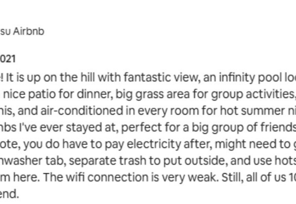 This is a lovely property with amazing views. The kitchen has lots of equipment to cook. The proprietor paid great attention to detail on furnishings and amenities. The house was very clean. There was even a spread of food available for us upon arrival, which was helpful for weary travelers. They supplied towels for the pool/hot tub. There is nothing more that you could desire in a vacation property in that area. We had five children with us and felt very safe letting them roam as the pool area