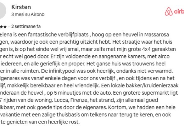 Airport: Pisa 42 km, Firenze 73 km, Bologna 158 km, Roma Fiumicino 271 km, Milano Malpensa 408 km Genova 148 km