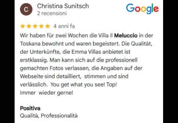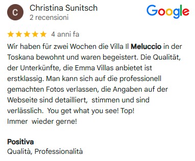 VILLA IL MELUCCIO HAS BEEN SUBJECTED TO A CHECK-UP BY A TECHNICAL RESPONSIBLE, TO ENSURE CONSISTENCY OF THE DESCRIPTION, ACCESSORIES LISTED ON THIS PAGE AND THEIR PRESENT STATE OF OPERATION/MAINTENANCE, TO GUARANTEE QUALITY, CLEANLINESS AND COMFORTS TO ALL CLIENTS WHO WILL STAY HERE.