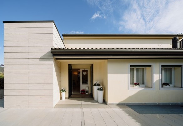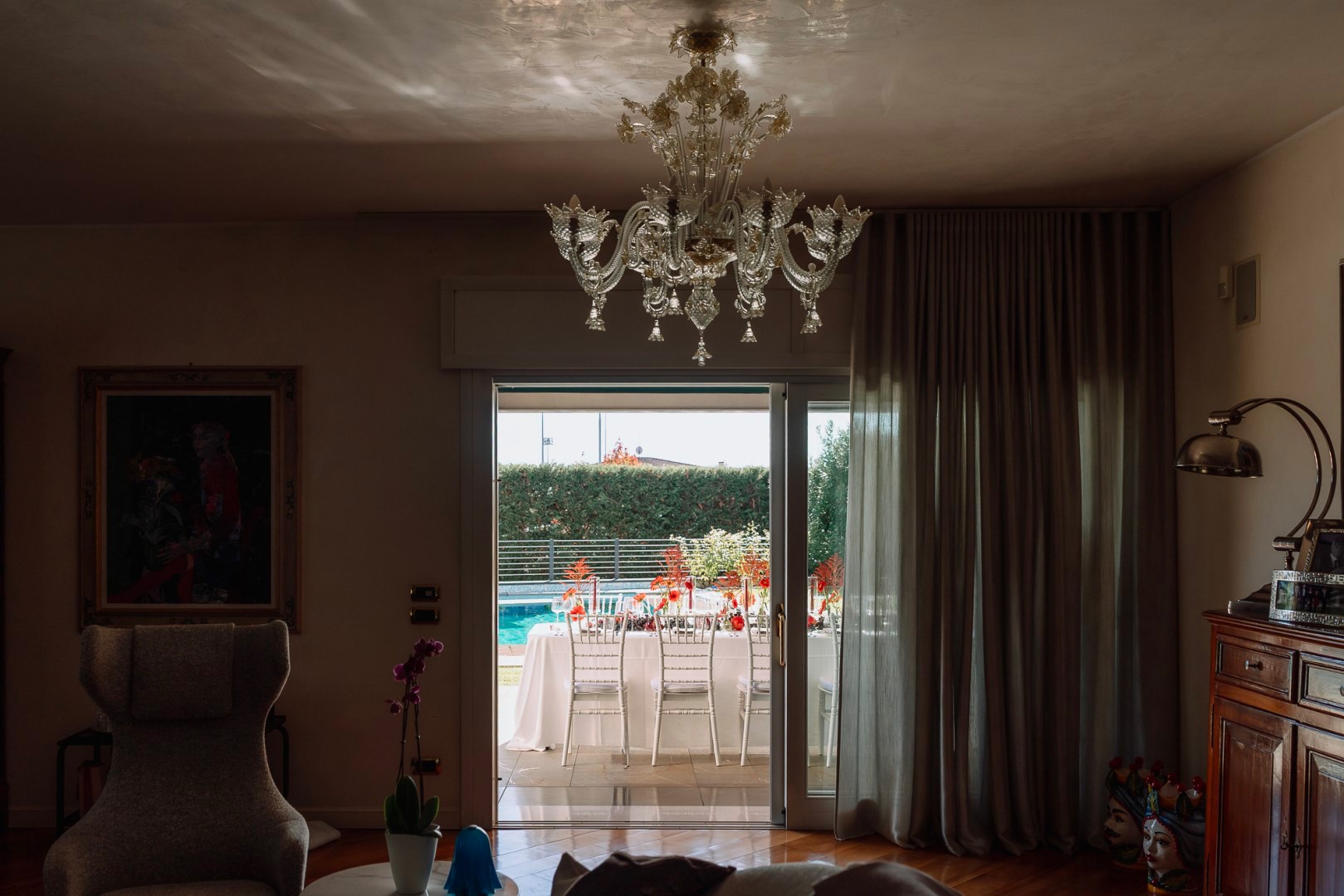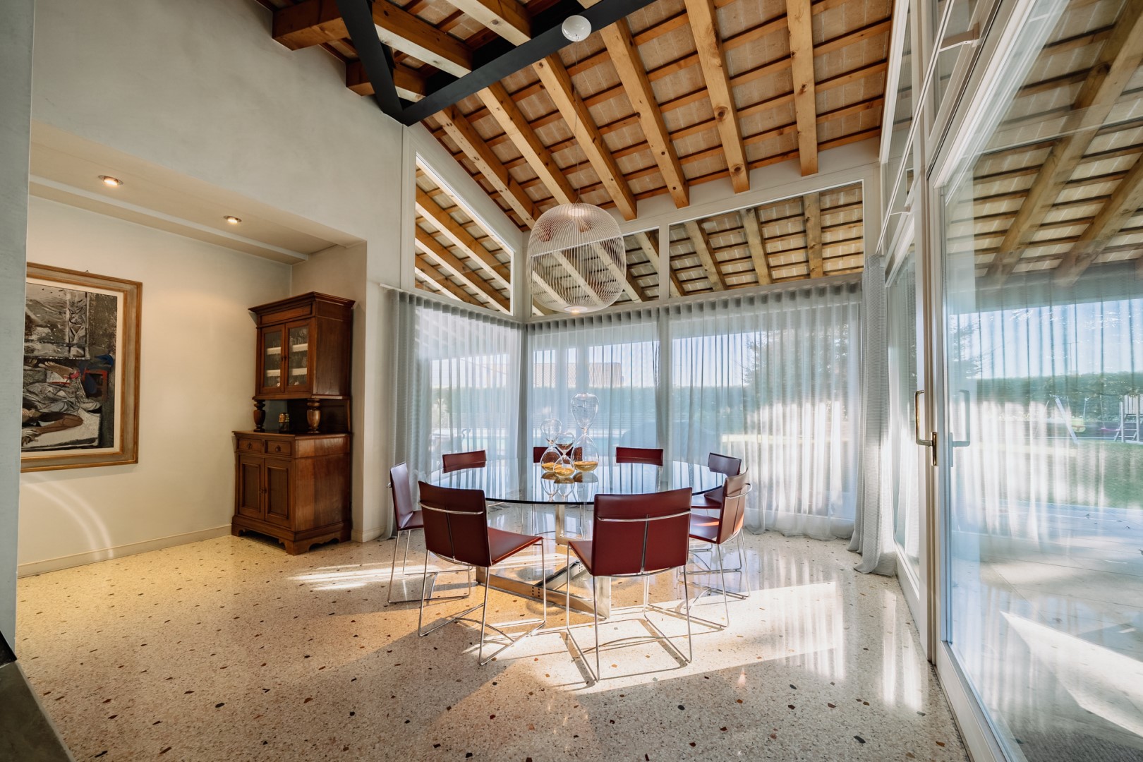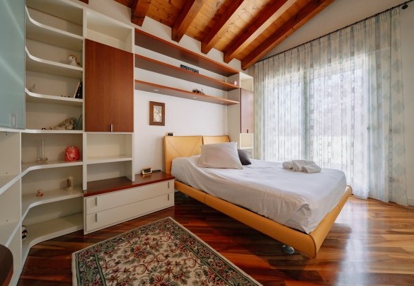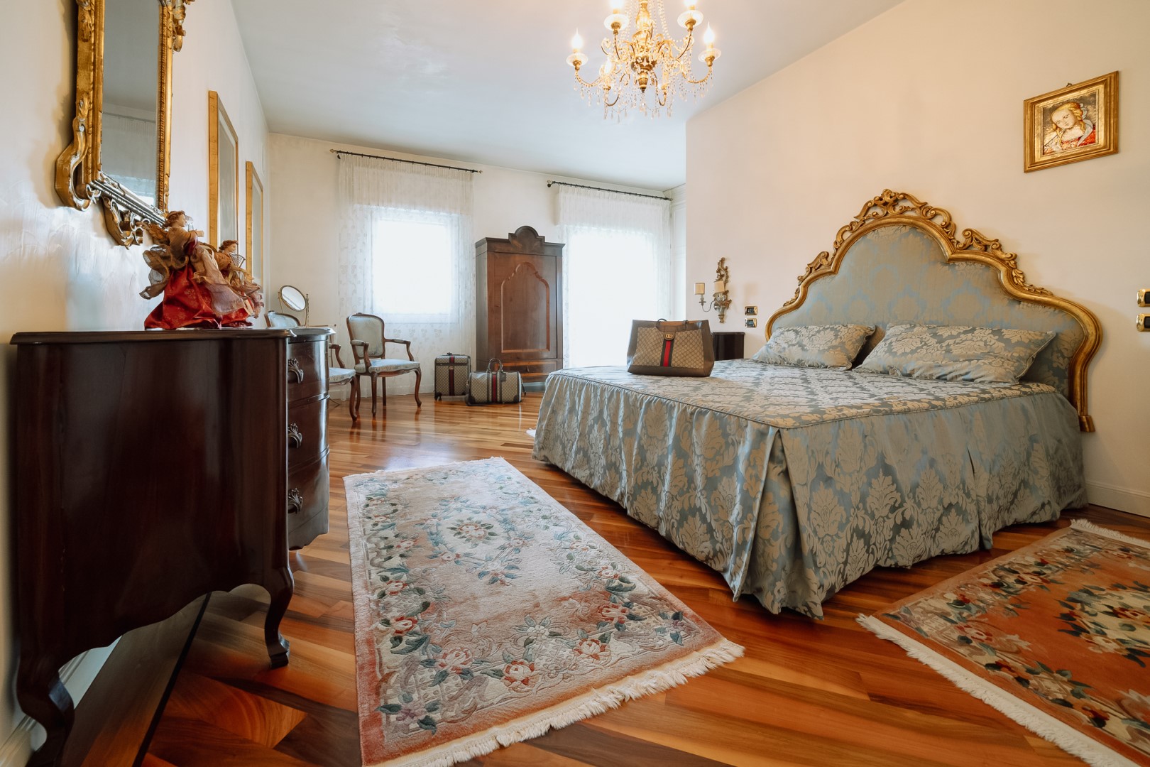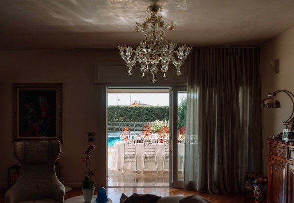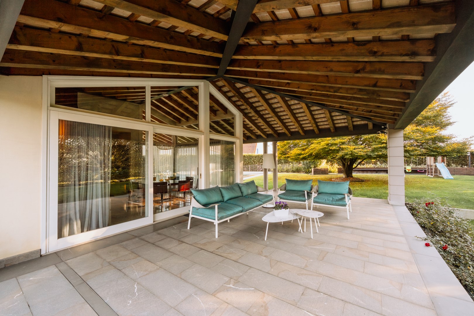 PRIVATE STRUCTURE (lease only). Dimora delle Stelle is located in Farra di Soligo, in the province of Treviso. Nestled in the heart of the Prosecco hills, a UNESCO World Heritage site, the villa offers spacious and refined areas, ideal for large families and groups. The interiors are distinguished by high-quality materials: Venetian terrazzo floors and Italian walnut parquet, a spectacular staircase in white Verona marble, handcrafted furnishings and a modern photovoltaic system that guarantees sustainability and comfort. The villa has six bedrooms, a wellness area dedicated to relaxation and a games room with a 100-inch maxi screen for entertainment. Outside, a spectacular garden, the fruit of Italian architectural ingenuity, welcomes guests with fountains and refined decorative elements in Corten steel.