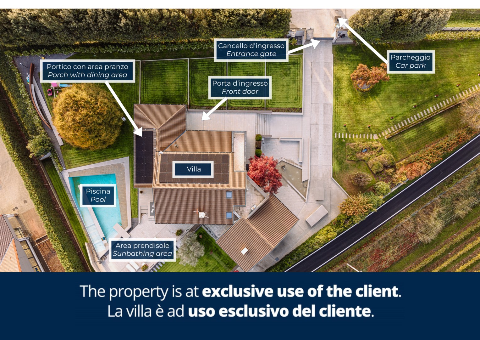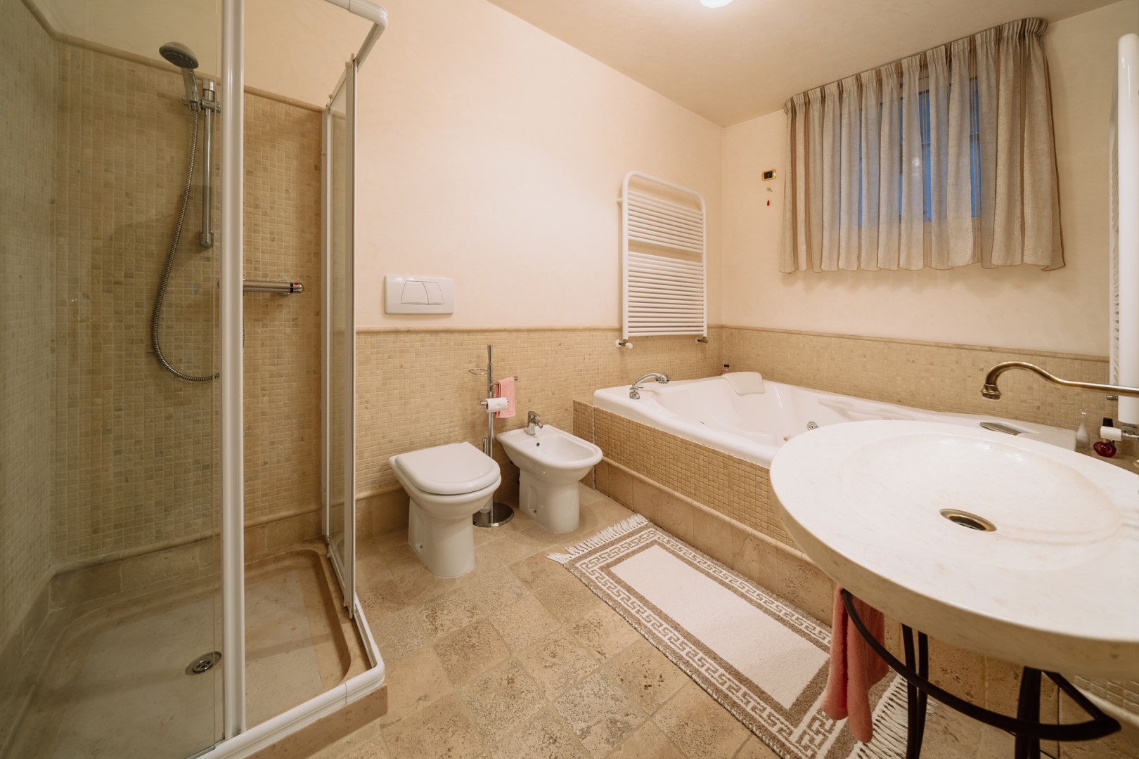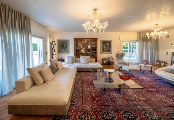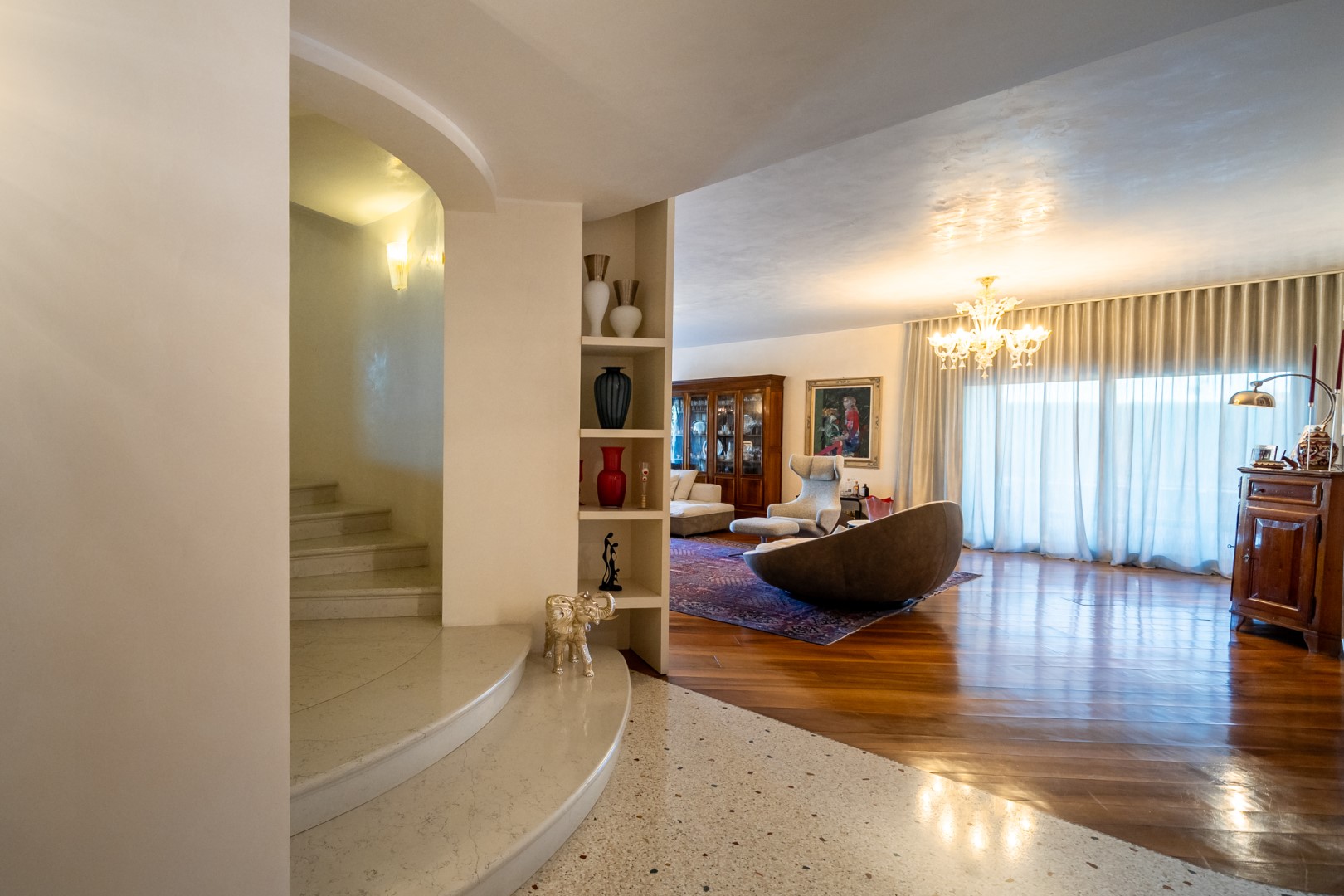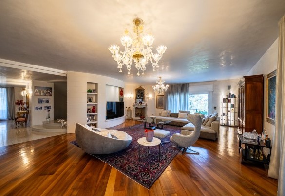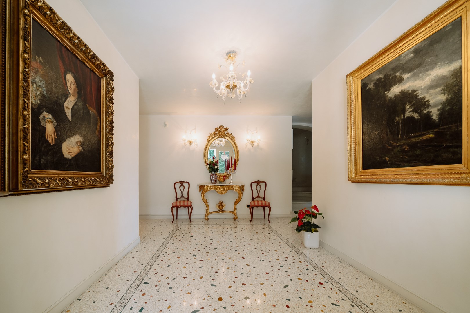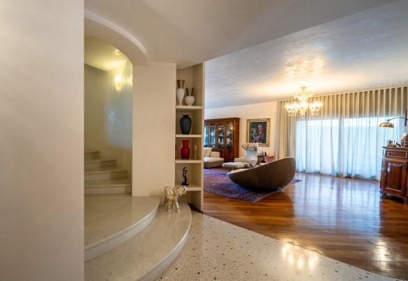 The park, which covers approximately 5,000 sq m, extends over several levels, partly terraced. It boasts rich and lush vegetation: perimeter hedges and blooms such as roses and oleanders, numerous trees such as olives, fastigiate beech, crape myrtle, jujube and apple blossom. There are fountains with water features and a small raised vegetable garden. On the upper ground floor, a large portico of about 100 sq m overlooking the pool houses the outdoor dining area and a relaxation area. The outdoor parking area can accommodate up to three cars, while a spacious garage, with entrance from the rear of the villa via a one-way road, can accommodate up to seven cars. Please notice that photos are taken in spring, therefore flower blossoming, and the colours of the gardens' grass could be different at the moment of your arrival at the villa.