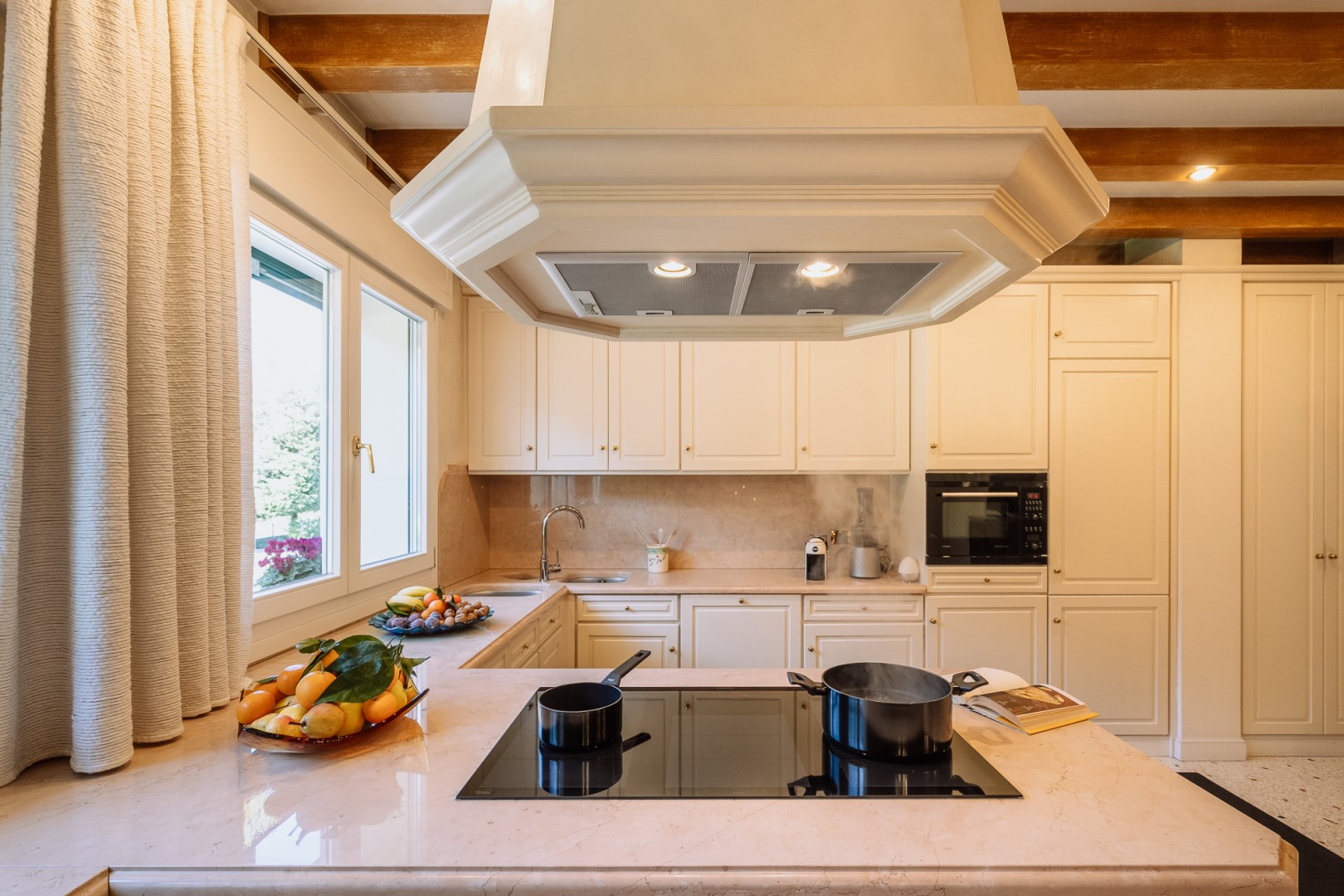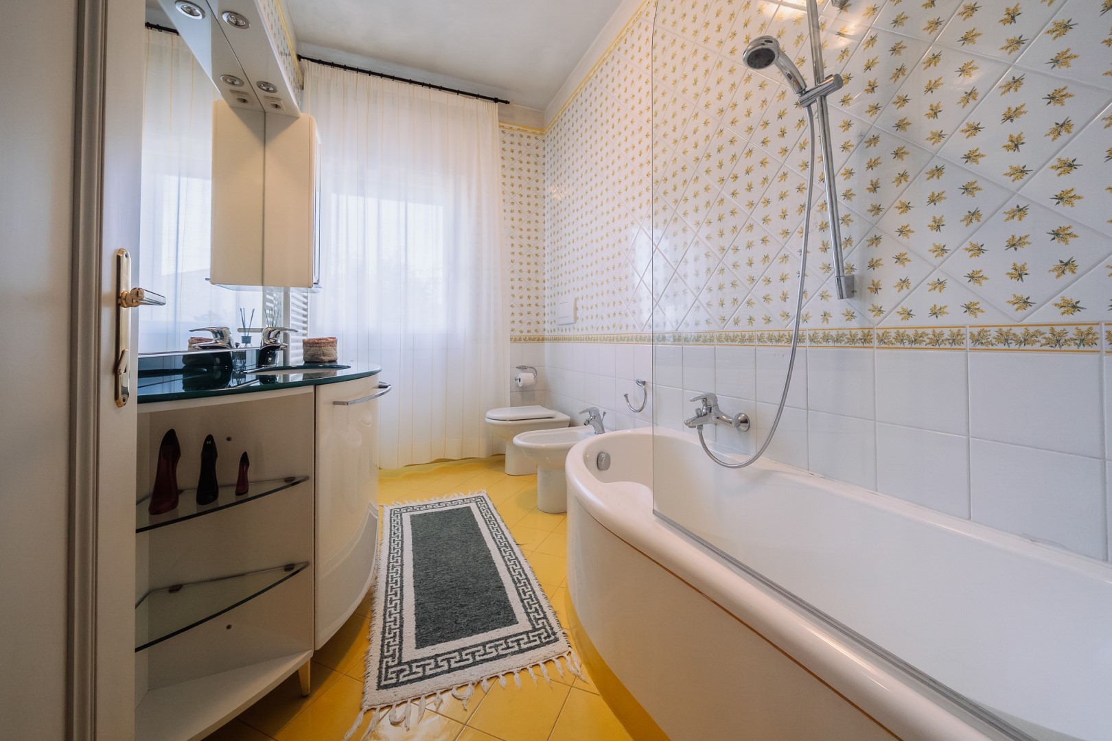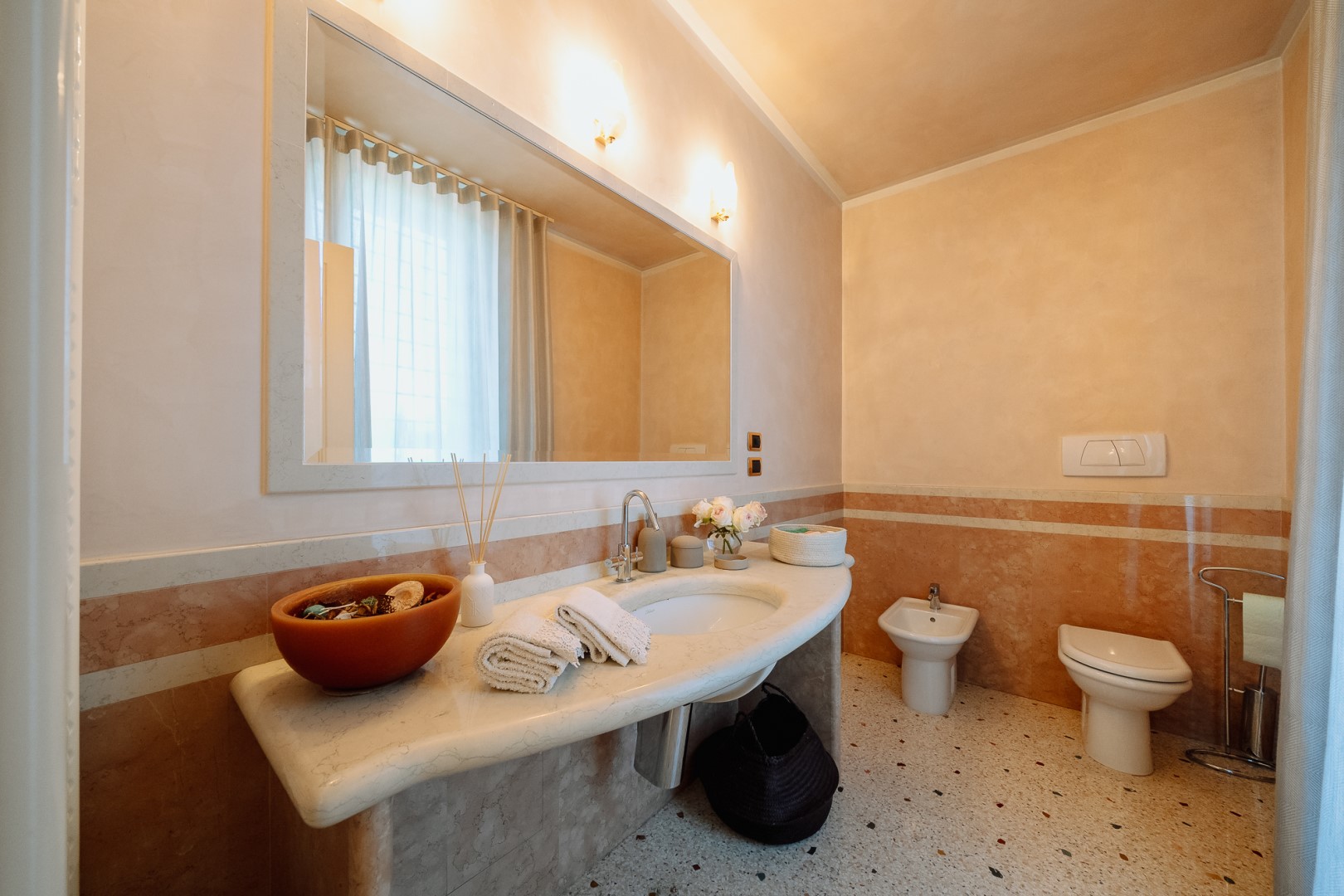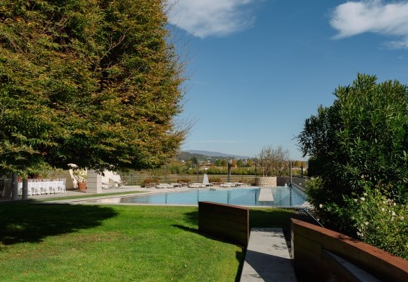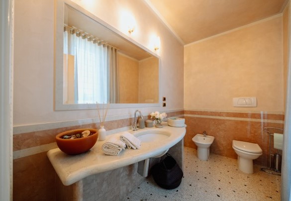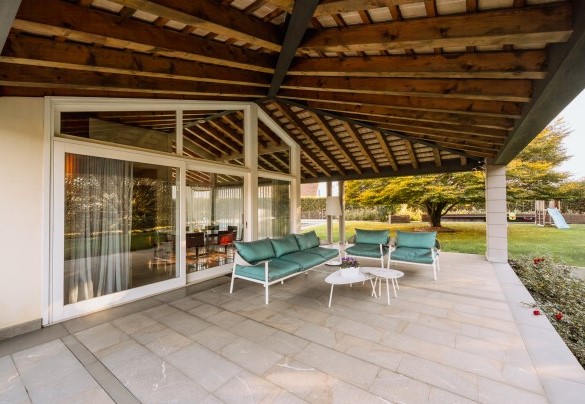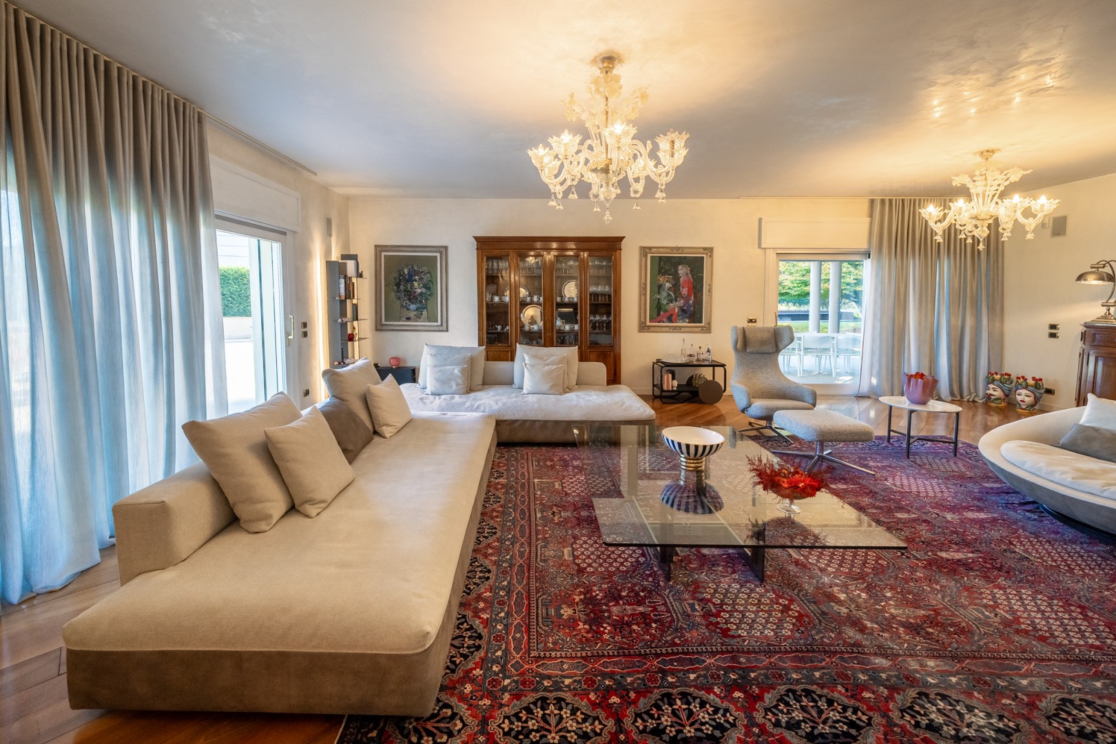 The park, which covers approximately 5,000 sq m, extends over several levels, partly terraced. It boasts rich and lush vegetation: perimeter hedges and blooms such as roses and oleanders, numerous trees such as olives, fastigiate beech, crape myrtle, jujube and apple blossom. There are fountains with water features and a small raised vegetable garden. On the upper ground floor, a large portico of about 100 sq m overlooking the pool houses the outdoor dining area and a relaxation area. The outdoor parking area can accommodate up to three cars, while a spacious garage, with entrance from the rear of the villa via a one-way road, can accommodate up to seven cars. Please notice that photos are taken in spring, therefore flower blossoming, and the colours of the gardens' grass could be different at the moment of your arrival at the villa.