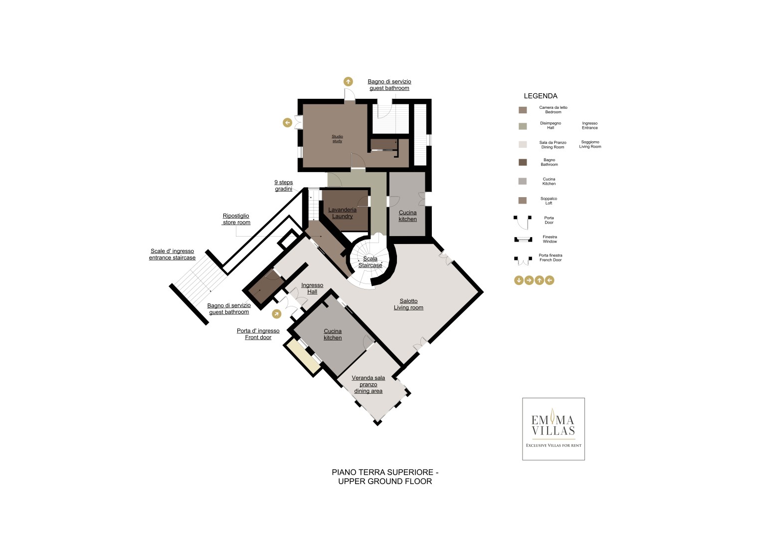 • Extra cleaning (€ 22,00/hour per cleaner), extra linen (€ 18,00 per person), heatig (€ 50,00 per day), wellness room with steam bath and Finnish sauna (on request at an extra cost). THE ABOVE-MENTIONED SERVICES CAN BE REQUESTED DIRECTLY AT EMMA VILLAS AND HAVE TO BE PAID ON SITE AS THEY ARE MANAGED BY THIRD PERSONS OR EXTERNAL SUPPLIERS AND NOT WITH THE OWNER OR EMMA VILLAS
