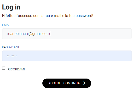 Se siete già registrati, per procedere con la prenotazione, è sufficiente effettuare il log-in, inserendo la vostra e-mail e la vostra password.