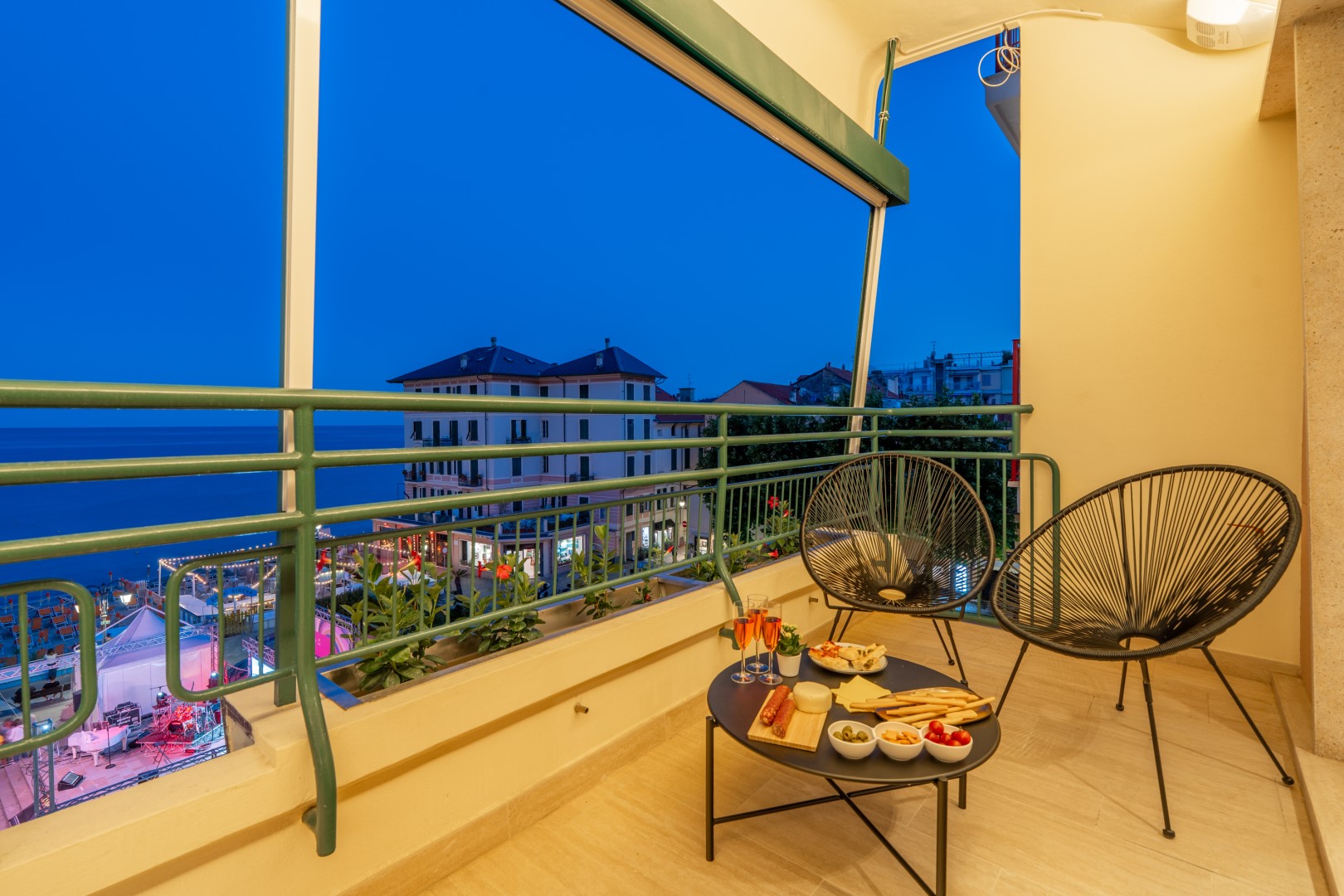 STRUTTURA PRIVATA (solo locazione). Dimora Mareblu è un raffinato appartamento situato a pochi passi dalla celebre passeggiata a mare, con una splendida vista sul mare, sugli stabilimenti balneari e su Piazza dei Partigiani, dove nelle sere d’estate si tengono spesso eventi e concerti. Gli interni, ampi e luminosi, offrono un ambiente moderno ed essenziale, curato con grande attenzione ai dettagli e al comfort. Siamo nel cuore di Alassio, una delle località più rinomate della Riviera delle Palme, celebre per le sue spiagge lunghe e sabbiose, per il clima mite durante tutto l’anno e per il leggendario Muretto di Alassio, un’installazione artistica nata negli anni ’50 sul Corso Dante grazie all’ispirazione di Ernest Hemingway e del pittore Mario Berrino. Il litorale si estende per quasi quattro chilometri lungo la costa, mentre alle spalle si aprono le dolci colline dell’entroterra e le vette come il Monte Bignone, punto panoramico d’eccezione da cui ammirare i tramonti più suggestivi. Al largo, nei pressi dell’Isola Gallinara, è possibile avvistare delfini, balenottere e talvolta persino balene, nel cuore del celebre Santuario dei Cetacei.