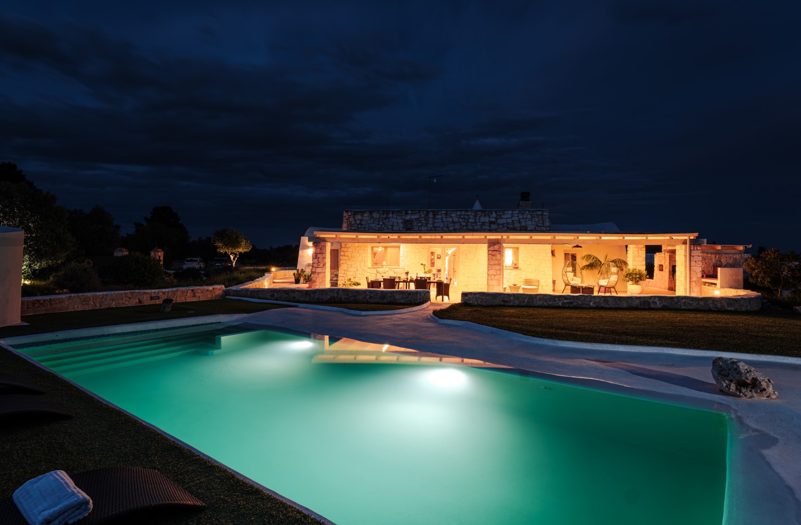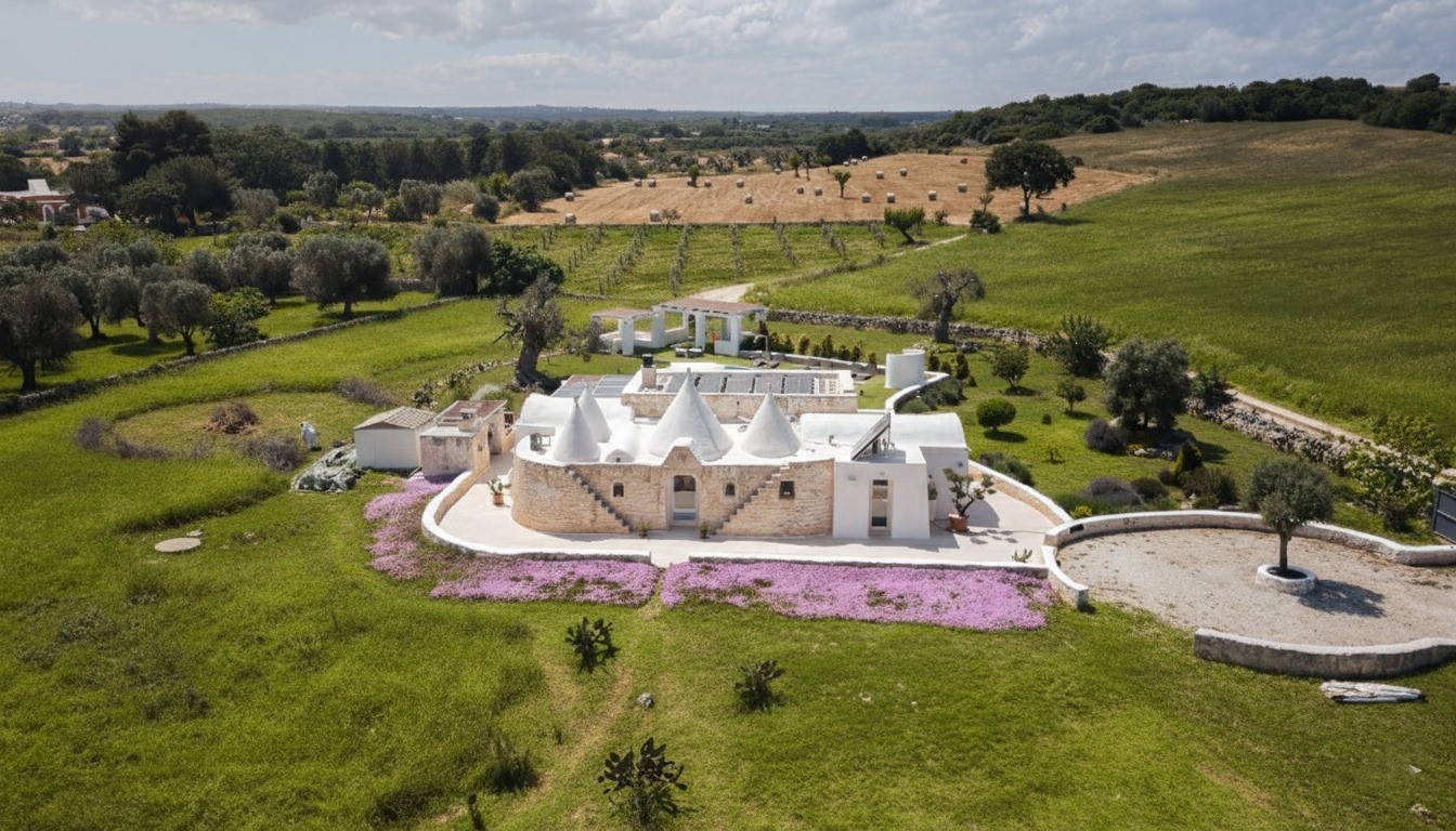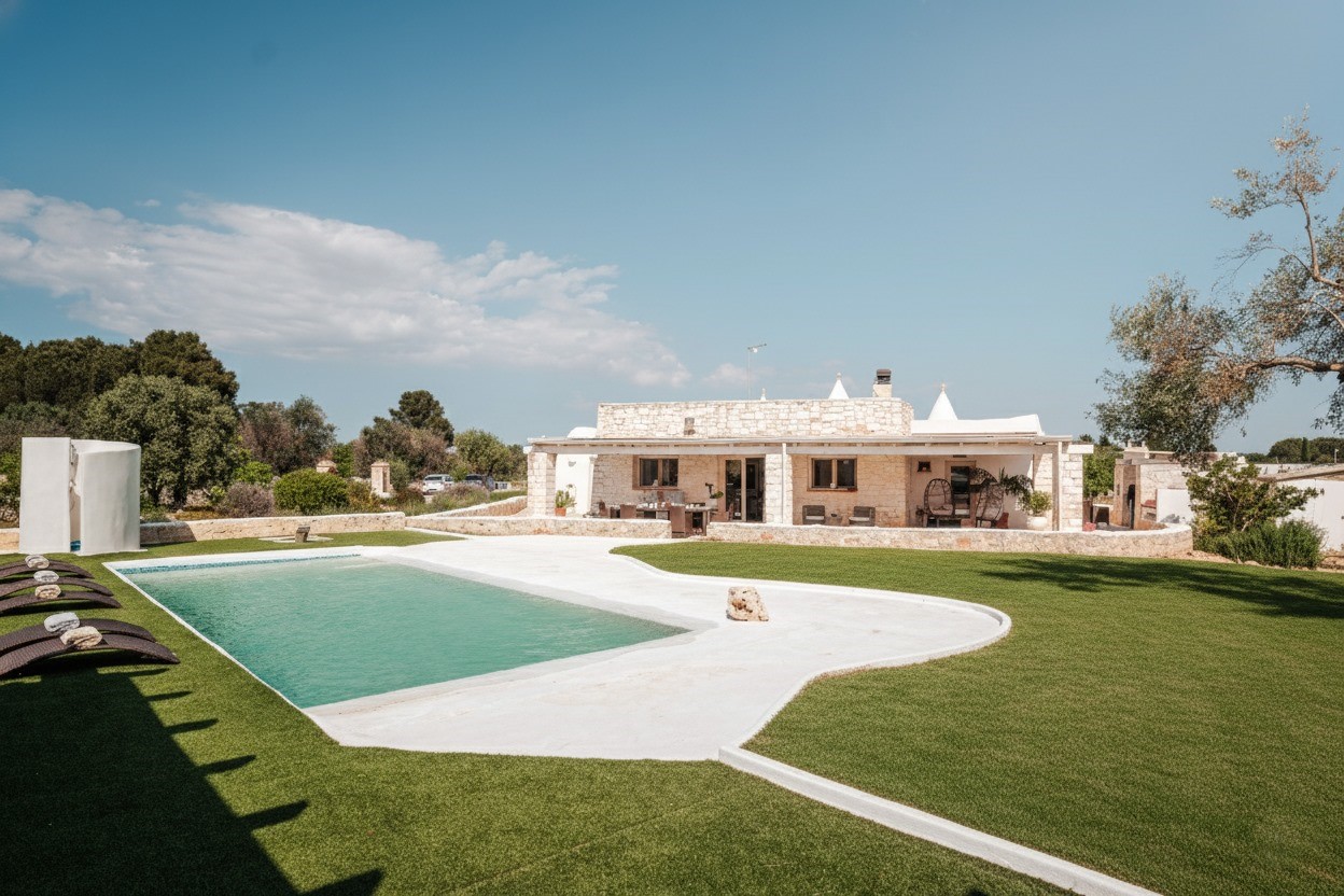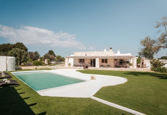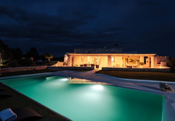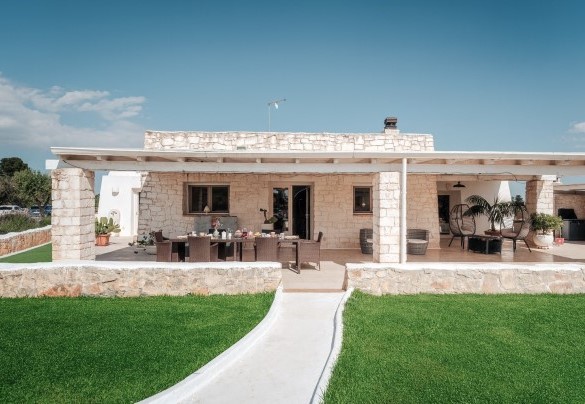 PRIVATE STRUCTURE (lease only). White Stone House, with swimming pool and mini indoor Spa, is a typical luxury house located in the countryside of Ostuni, whose particular features are the stunning panoramic views over the rolling Apulian hills, the infinity pool and the immense outdoor areas: a riot of colours and nature that light up your eyes and gladden your mind. Its Mediterranean character and shabby chic settings make the house a unique gem for a holiday based on complete relaxation. Set in a perfect location: to the north, the winding routes of the Valle d'Itria, with the trulli, the charm of an architecture unique in the world; to the south, the bustling roads of the Salento, a perfect blend of culinary traditions, art and history, between the Ionian and Adriatic Seas. A short distance from famous Ostuni, known as the “White Town”, a renowned magnet for tourists from all over the world. The flooring of the solarium area has been changed, photos of the updated situation will be published shortly.