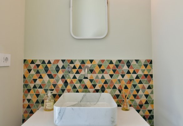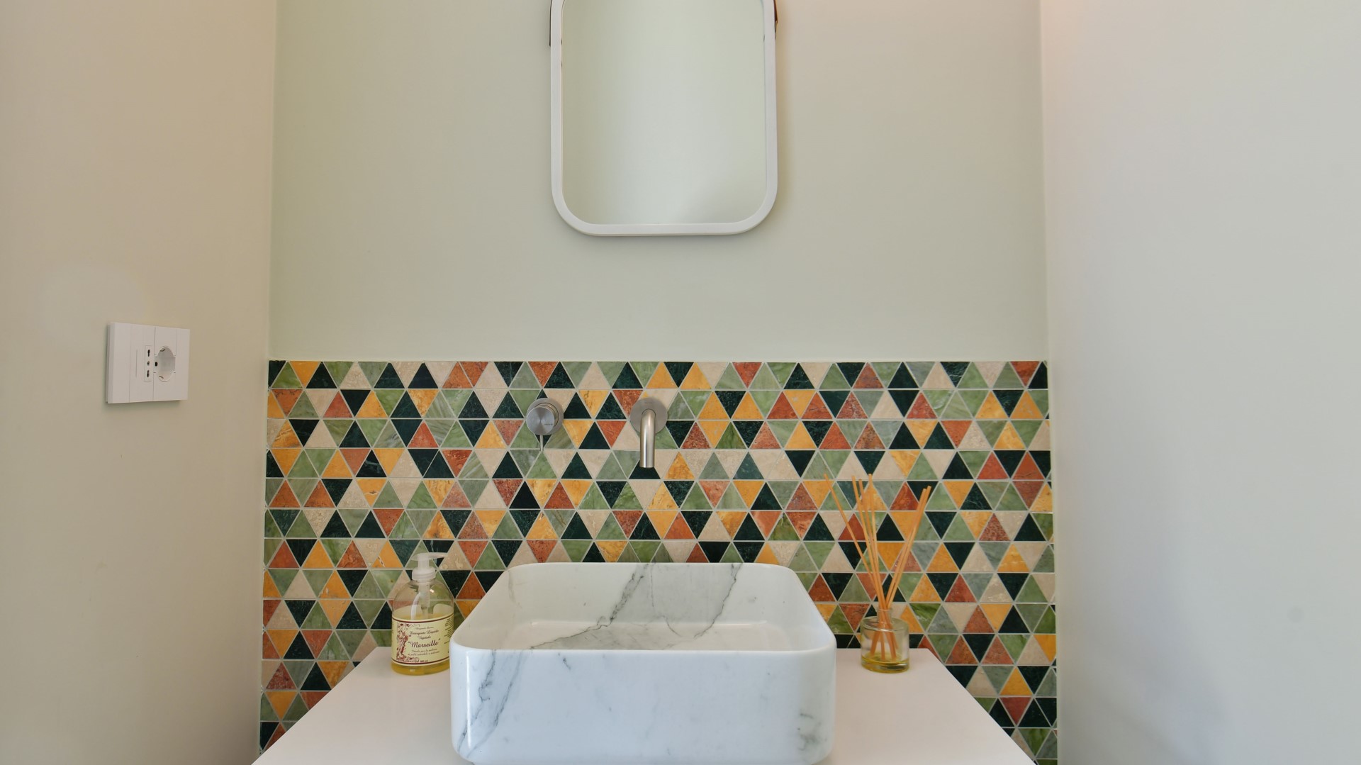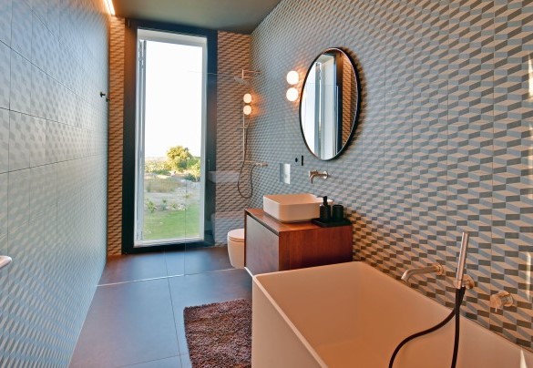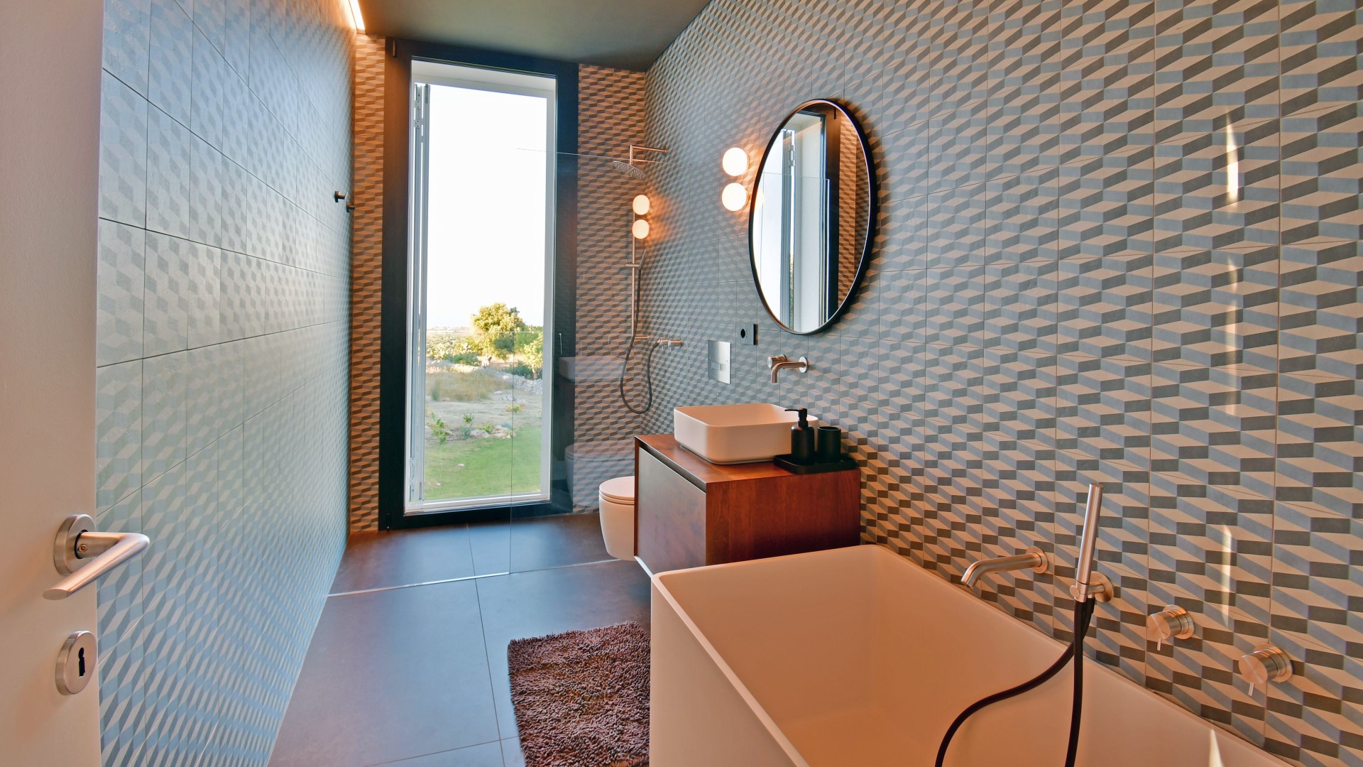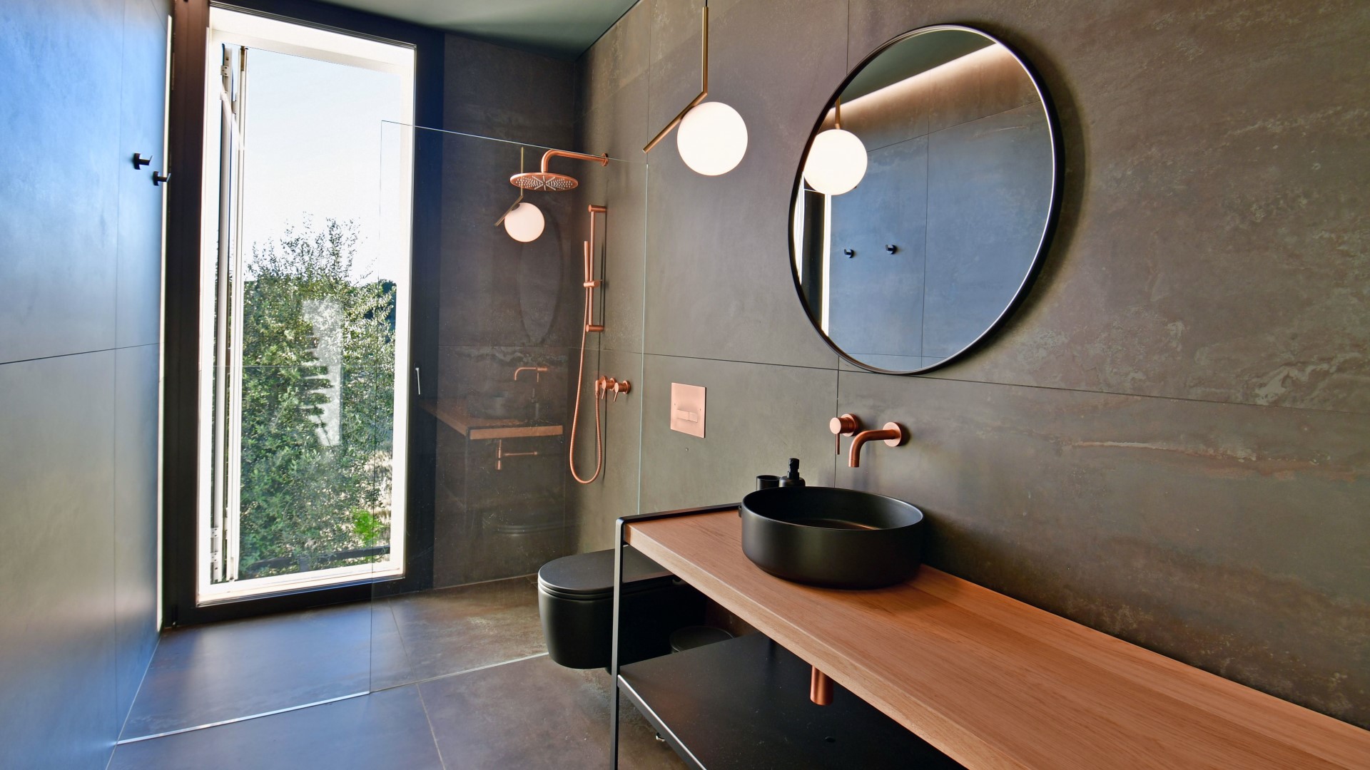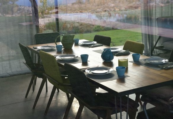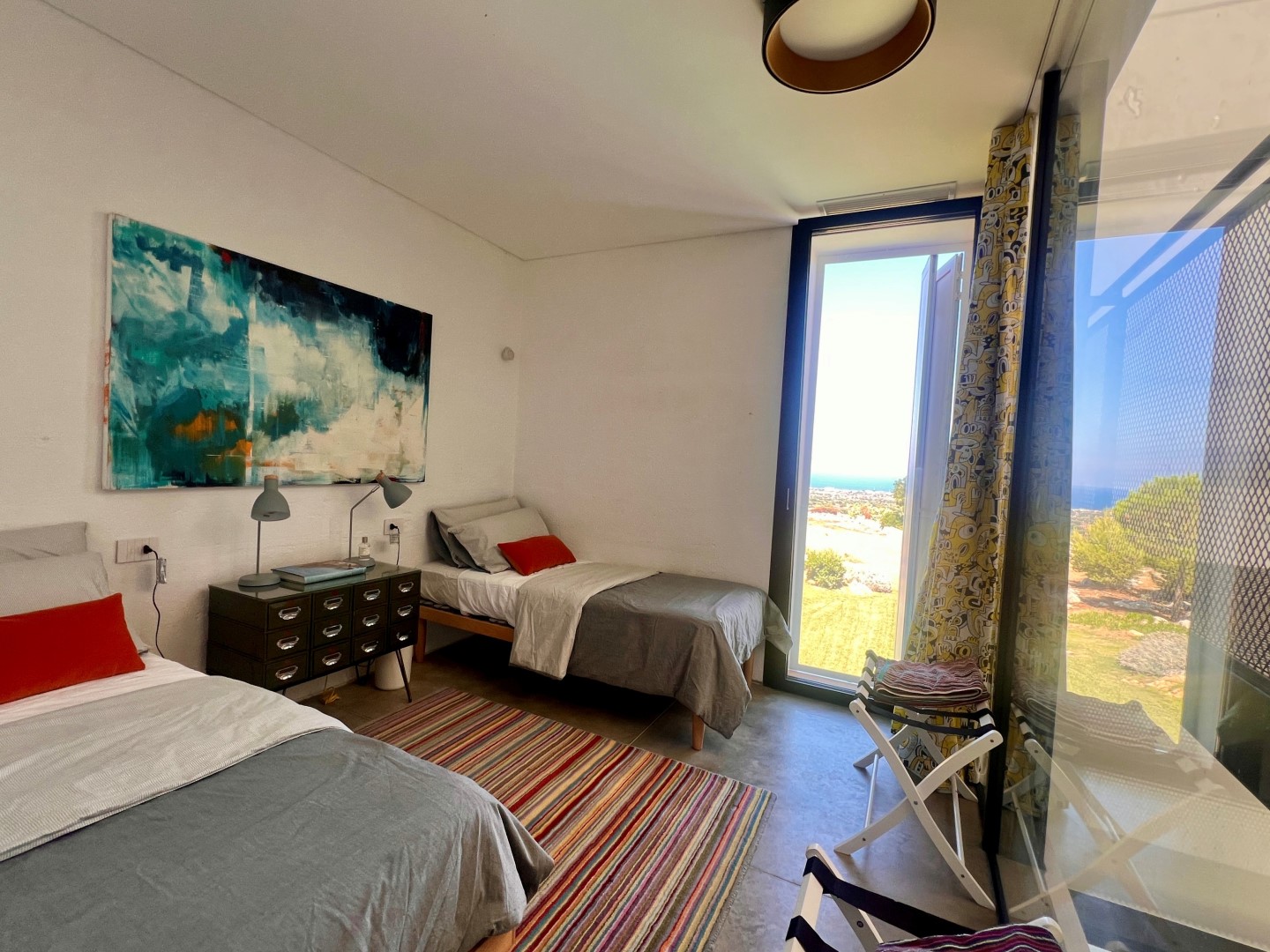 RECEPTIVE STRUCTURE. Perched on a UNESCO-protected hillside, the villa blends seamlessly with its natural surroundings, creating a harmonious dialogue between architecture and landscape. Designed by acclaimed architect Daniele Corsaro from Grottaglie, the villa reflects a modernist aesthetic, inspired by Le Corbusier’s Pavillon House and the indoor-outdoor style of Californian architects such as Eames, Eichler, and Neutra. A standout feature is the internal courtyard garden, framed by a steel staircase and enriched with tropical plants, forming an integral part of the living spaces. Combining advanced technology with Apulian tradition, the villa’s exterior showcases local materials, including dry-stone walls and tuff stone. Spread over two levels, the villa is bright and welcoming, with large windows that fill every room with natural light. The ground floor features a multifunctional open space linking the living room, dining area, and kitchen, creating a convivial and dynamic atmosphere. Upstairs, the living area is centered around a suspended Gyrofocus fireplace, while vintage pieces, including Bertoia chairs, add charm and style.