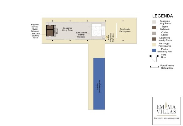 Please notice that photos are taken in spring, therefore flower blossoming, and the colours of the gardens' grass could be different at the moment of your arrival at the villa.