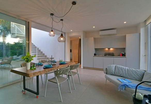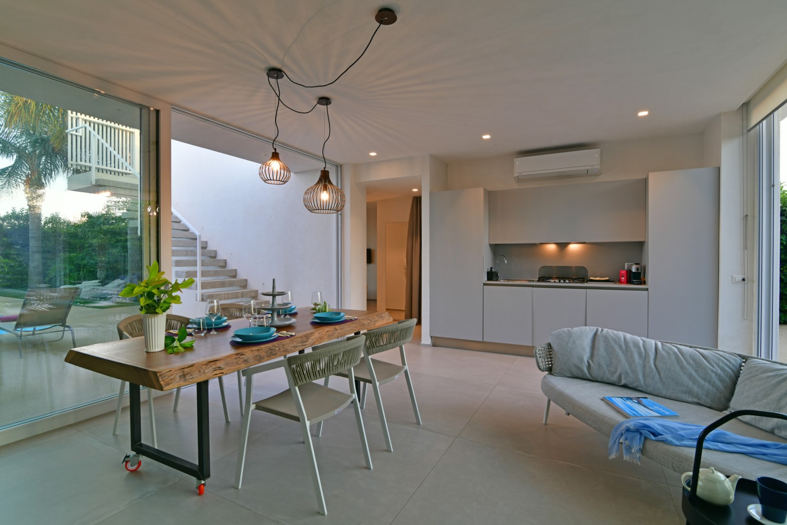 RECEPTIVE STRUCTURE(Rental only). Villa Carubbo is located in the scenic Val di Noto in southeastern Sicily, near the Baroque gems of Ragusa Ibla, Modica, and Scicli, all UNESCO World Heritage Sites. Just 3 km from Marina di Ragusa, this modern villa is part of a cluster of coastal homes, only 400 m from the golden beaches of the Mediterranean. Its sustainable design incorporates wood and glass, with large French windows creating a seamless connection between indoor and outdoor spaces. Ideal for families or groups, Villa Carubbo offers a tranquil retreat with easy access to Sicily’s cultural and coastal treasures.