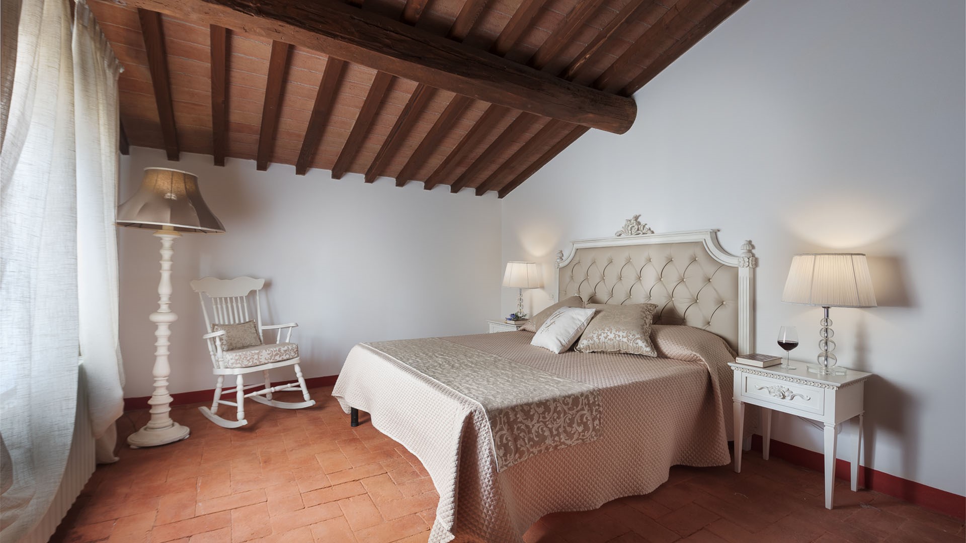 RECEPTIVE STRUCTURE (CIR CODE: 050024AAT0018; CIN CODE: IT050024B5PBXEO4Z7). Villa Ginestraio is a magnificent property which is the result of meticulous renovation that has transformed an old 13th century Pisan watchtower into an exclusive place of relaxation and well-being. It is located about four kilometres from the lively historic borgo of Castelfalfi in the pictoresque countryside between the Era valley and the beautiful hills of Florentine Chianti. This elegant, two-storey villa, finely restructured with quality materials of Tuscan tradition, stands on a hill; on the top floor are the comfortable air-conditioned bedrooms with ensuite bathroom, each personalised by the warm, enveloping pastel shades of the romantic beds and by lovely ornaments and furnishing accessories, which can comfortably accommodate up to fourteen people in a location which is ideal both for families and for sports-loving and adventurous travellers, given the multitude of sports activities at your fingertips, like the most beautiful golf course in Tuscany, with 27 holes. The house contains a beautiful, spacious living room with billiard table, seating area and dining room connected to the professional kitchen that leads out to a panoramic porch overlooking the rolling hills and then on to a vast, manicured expanse of lawn with a cosy outdoor living area and a children's play area. The property is enhanced by a luxurious, enclosed pool area which includes a whirlpool and a gazebo set up for relaxing in the shade. Surrounding this inviting setting is the peaceful, regenerating atmosphere of nature, absolute protagonist here, and, at the same time, with plenty of opportunities to learn about the artistic wonders and the numerous borghi that surround Castelfalfi. N.B. The owner occasionally lives in an annex near the main house, a very kind and discreet lady who takes care of the maintenance of the garden and the swimming pool on the days agreed with the guests, but in full respect of their privacy.