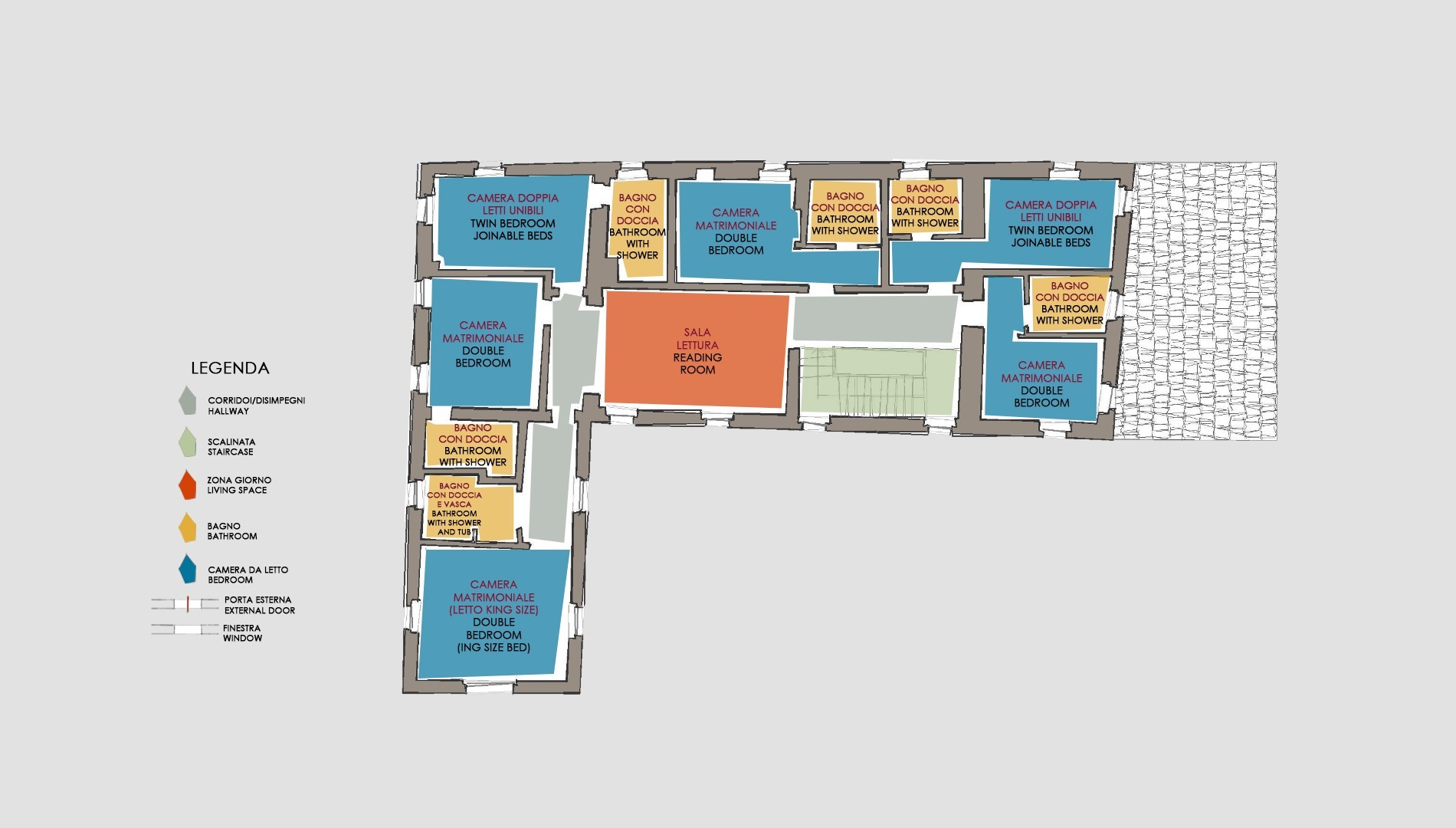 For more technical details and layout of spaces, see "Planimetries"