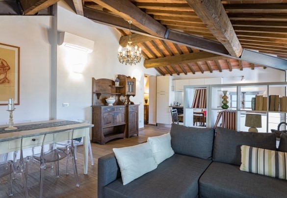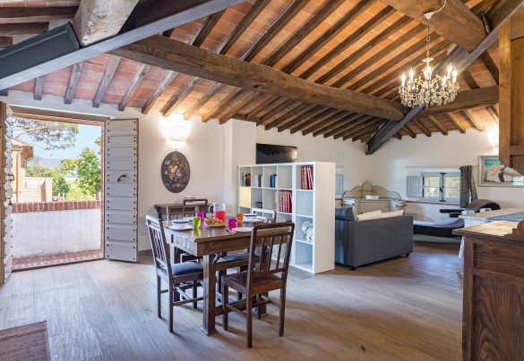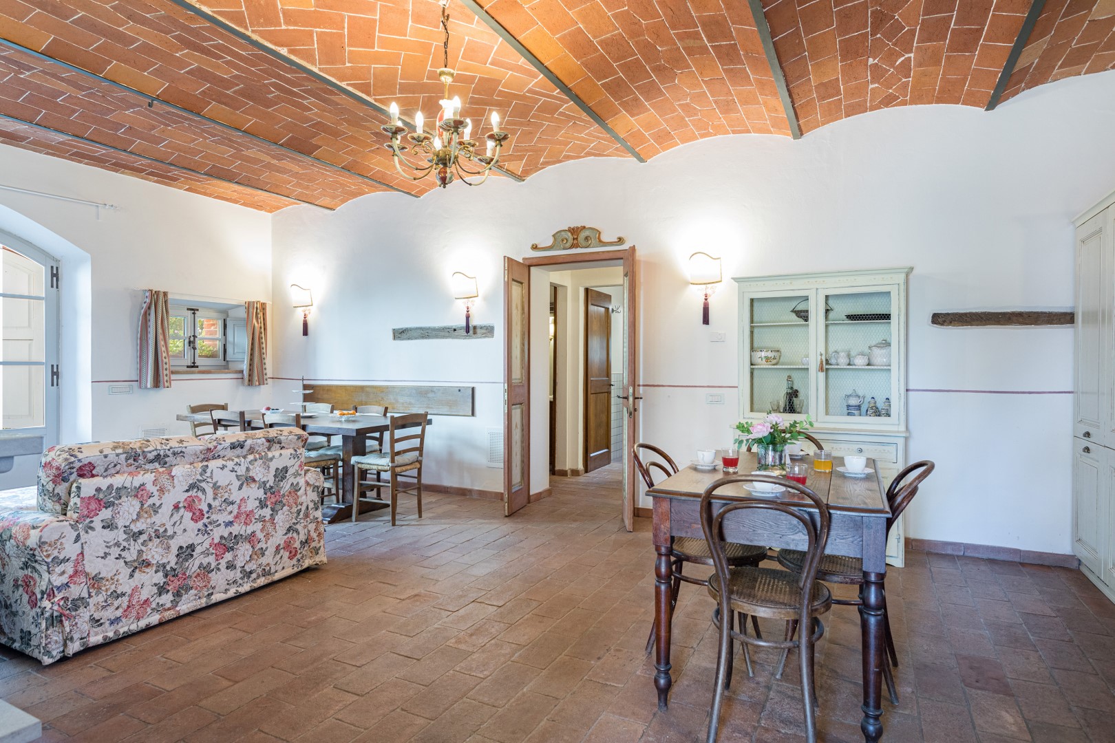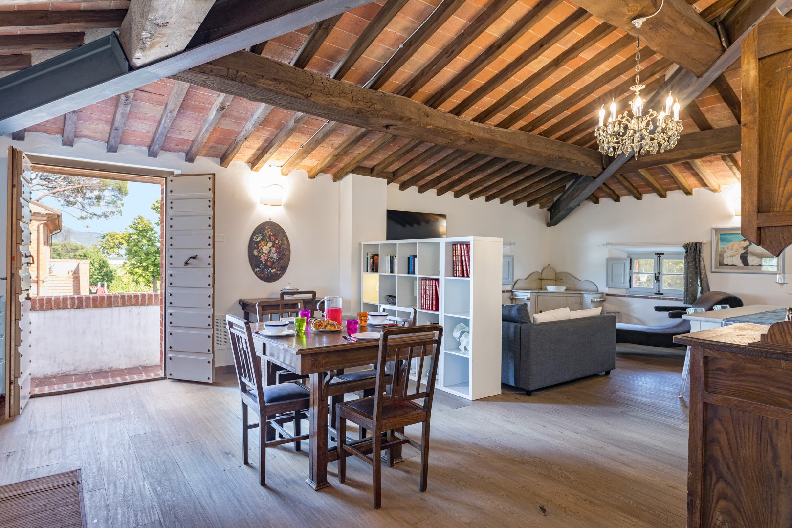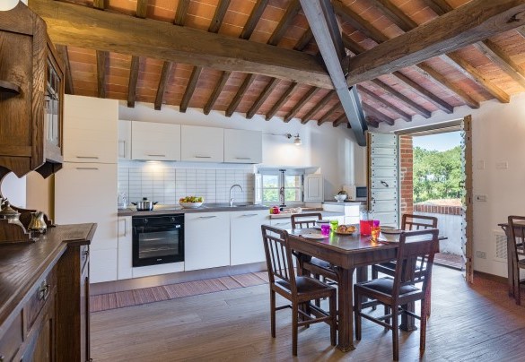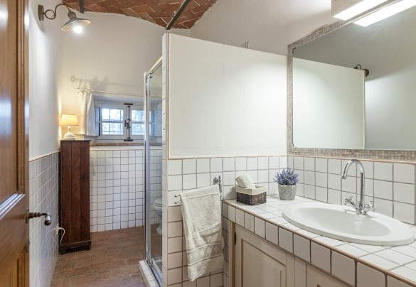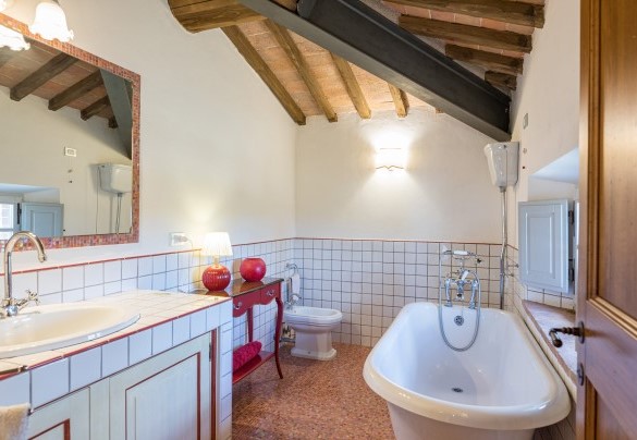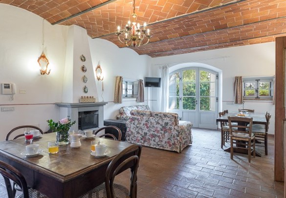 The structure consists of a three-floor 16th century villa, and an annex in stone and brick divided into two floors (about 20 m from the villa) with a 100 sq m apartment on each floor with independent entrance. VILLA: Three floors connected internally by an elegant stone staircase. The main entrance is located on the ground floor, in front of a green area with a large table and chairs. To the right of the main entrance is a living room furnished with Smart TV, sofa, armchairs and a table seating 6 with direct access to the outside. To the left of the entrance is a sitting room with frescoed ceilings, antique stone fireplace, sofa, armchairs, piano (tuned) and a dining table seating 8, with direct access to the outside. From the main entrance, a short corridor leads, on the left, to a guest bathroom and to a small games room with table football, and, on the right, to the dining room with an extendable table seating up to 14 people, with direct exit out to the gazebo with tables and to the pool area. The dining room is connected by a small arch to the fully-equipped kitchen with marble peninsula with stools and a wooden table with bench and chairs for 8 people, TV and direct outside exit. From the kitchen, through a door and up 4 steps and then down 4 steps, you come to the laundry area with a wood oven, a guest bathroom with shower and the stairs leading to the caretaker's house. Returning to the main entrance and going up 21 steps to the first floor, you come to a small landing which leads, through two respective doors, to the two wings of the first floor. In the right wing is a study, a double bedroom with ensuite bathroom with shower and tub, three double bedrooms and a bathroom with shower and tub, while in the left wing is a double bedroom with ensuite bathroom with shower and a study with Smart TV. Going up 21 steps to the second floor you come to a small landing which leads to the two wings of the second floor. In the left wing are two double bedrooms and an adjacent bathroom with shower, while in the right wing are two double bedrooms with walk-in closets, a bathroom with shower and a small TV room (Smart TV) embellished with old books. Also on the second floor is a furnished panoramic terrace which is accessed from the corridor through a French window. ANNEX: Two apartments with independent entrances. GROUND FLOOR: On the right is a laundry room, opposite which another door leads directly into the open-plan living room with kitchenette, a table seating 4, a table seating 8, two sofas, a TV and a fireplace . A door leads to the sleeping area with a double bedroom, a bathroom with shower and a twin bedroom (with joinable beds). FIRST FLOOR: accessed by an external, 19-step staircase, you enter directly into an open-plan living room with kitchenette, a table seating 4, a table seating 6, a chaise-longue, a corner sofa and a TV. From the living room a small hallway leads to a double bedroom and ensuite bathroom with tub.