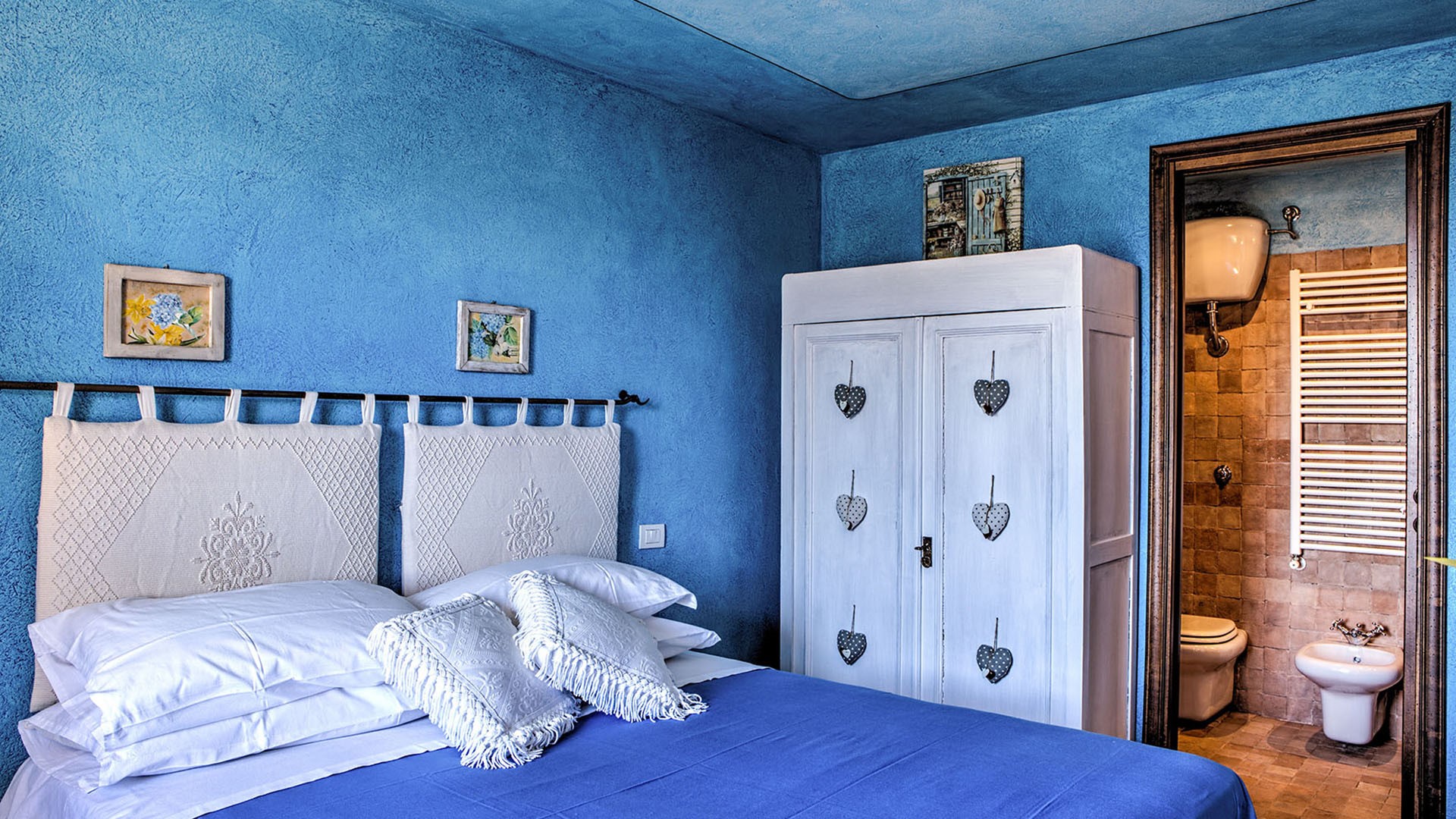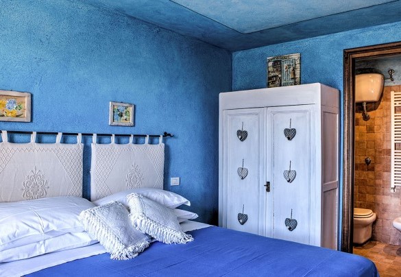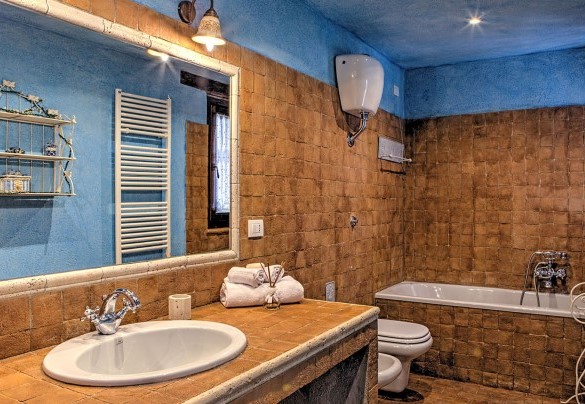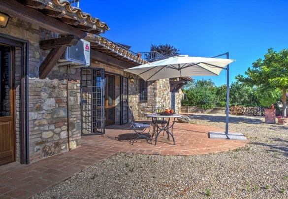 The main entrance to the two-storey house on the ground floor leads into the open-plan kitchen, equipped with washing machine, with a large lounge and a dining room with a French window that allows direct access to the portico with the outdoor dining area. The ground floor is completed by a double bedroom, a twin bedroom and a bathroom with tub. 14 steps from the sitting room lead to the first floor with double bedroom and ensuite bathroom with shower. ANNEX: On just one floor, it is located at a lower level than the main house and is reached by crossing the pool area. The main entrance leads into the sitting room with sofa and wood stove. On the right is a double bedroom with one single bed added (extra cost on request) and adjoining bathroom with tub and to the left of the sitting room is a double bedroom and ensuite bathroom with shower. All bedrooms have TV and air-conditioning.