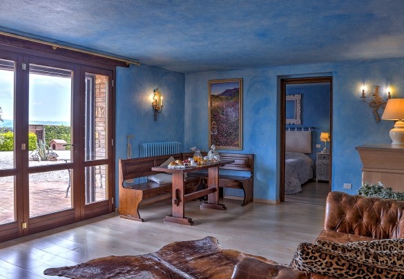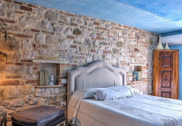 PRIVATE STRUCTURE (Lease only). Set in a dominant position, with a breathtaking panorama and a view as far as the eye can see over the hills of Todi, one of the most beautiful towns in Umbria still intact and unique, and surrounded by olive groves and flowering trees, is Casal del Salice. A delightful classy residence, its exterior is clad in exposed antique stone while the interior has chestnut wood-beamed ceilings and fine terracotta floors. The spacious room, containing lounge, dining area and kitchen, with gaily-coloured walls is tastefully furnished, enlivened by arches in brick and stone and brightly-lit thanks to the windows facing directly out over the garden and pool. Casal del Salice is composed of a main house and an annex. The property is perfect for family reunions, for groups of friends and for families with children who want to spend their holidays together while preserving their privacy. The bedrooms are simply furnished with fine, unique details and are all equipped with air conditioning. The garden is full of numerous plants, tall trees and typical flowers of the area and a few metres from the portico is the private pool in a panoramic position. Sipping an apéritif under the gazebo by the pool or dining under the portico will be an unforgettable experience, especially at sunset with the view over the surrounding hills and villages. This oasis of peace and tranquillity arose thanks to the owners' interest and love of nature, animals and the extra virgin olive oil that abounds in this area, in the heart of Umbria. The residence, located in the small borgo of Ficareto, a few kilometres from Todi, has the advantage of being in a focal area for culture, art and fine food and wine. It is the perfect starting point for excursions to Orvieto, Perugia, Assisi and Spoleto, to the nearby Santuario dell'Amore Misericordioso in Collevalenza and also to Florence and Rome, being just a few kilometres from the E45 highway which links Umbria, Tuscany and Lazio. Services and shops for basic needs, open also on Sundays, can be found in Todi and Ponte Rio, just 10 minutes drive away. NB. The caretaker occasionally lives within the property, with private gate and fence in an independent position; this lady, very discreet and helpful.