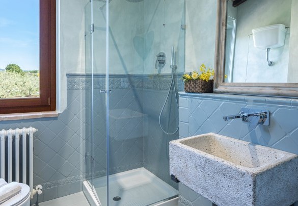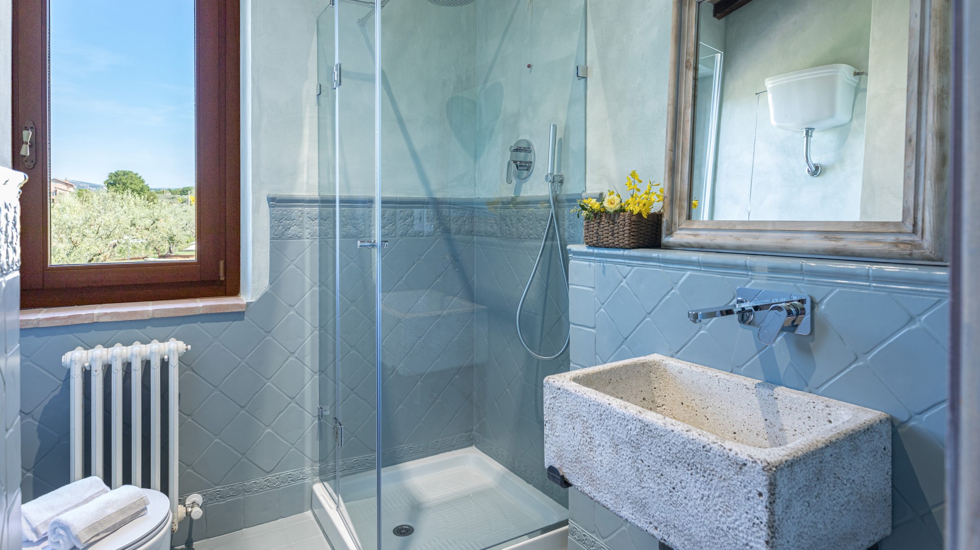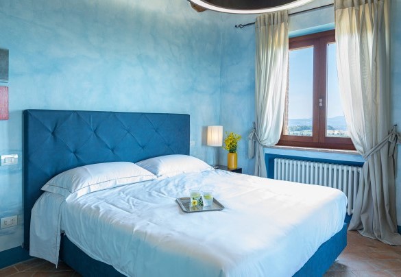 PRIVATE STRUCTURE, (lease only). Located in the heart of green Umbria, among the hills on which lie Collazzone and Todi, is the wonderful Le Residenze dei Potti, a magnificent example of a farmhouse renovated with great taste and elegance. Entirely built in stone, it will welcome you within its walls, flaunting the luxurious materials that adorn both the indoor and the outdoor areas, from renowned handmade terracotta to splendid stone arches and chestnut ceiling beams. The bedrooms are large and bright, personalised with designer accessories, painted with warm, intimate colours and equipped with air conditioning. The heart of the house is the large living area on the ground floor, featuring a spacious living room with fireplace and a modern kitchen with central island which open through multiple exits to the exterior, a true oasis of peace where you can enjoy many well-equipped areas. Completing this idyllic picture is a well-kept park with a green lawn surrounded by old olive trees, an infinity pool lined with mosaic in various shades of blue and a splendid view that stretches over the rolling green hills, dotted with vines and olive groves, and various little towns up to the city of Perugia on the horizon. This fantastic house, with renovations completed in 2022, arose from the owners' interest and passion for nature and the excellent, high-quality extra virgin olive oil that this area of Umbria offers in abundance. The guests can seize the opportunity for tastings directly in the