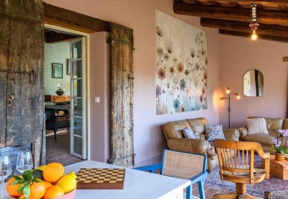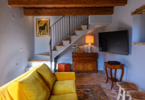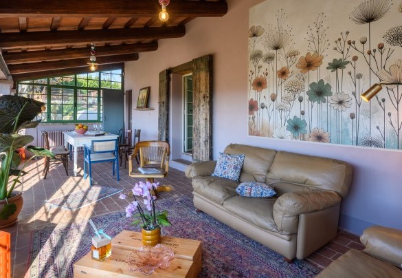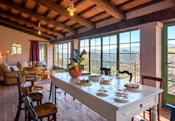 STRUTTURA PRIVATA (solo locazione). Nel cuore del borgo contadino di San Vicino, a Macerata Feltria, sorge un casale in autentico stile marchigiano, un tempo antica casa padronale e oggi accogliente dimora per chi desidera un soggiorno immerso nella quiete delle colline. Recentemente ristrutturata con grande cura, la villa conserva intatto il fascino rustico delle origini: pavimenti in cotto recuperati, porte originali e travi in legno a vista restituiscono l’atmosfera calda e genuina delle case di un tempo. Il vero gioiello è la splendida veranda panoramica, un luogo privilegiato da cui ammirare tramonti mozzafiato che tingono il paesaggio di colori sempre nuovi.