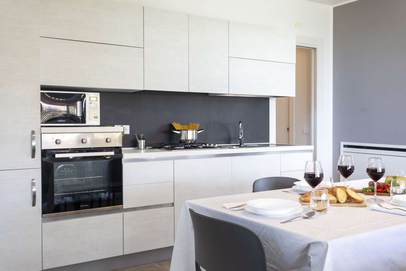 La proprietà si sviluppa su due piani collegati da scale interne. PIANO TERRA – Ingresso nel living con cucina in open space e con accesso diretto al portico attrezzato e alla piscina; camera matrimoniale; bagno con doccia e ripostiglio. PRIMO PIANO – Camera matrimoniale con vasca idromassaggio en suite, bagno con doccia e accesso alla terrazza. La lavanderia è ubicata in un locale esterno.