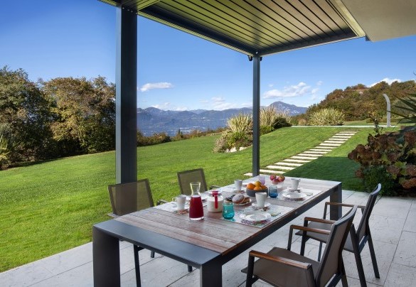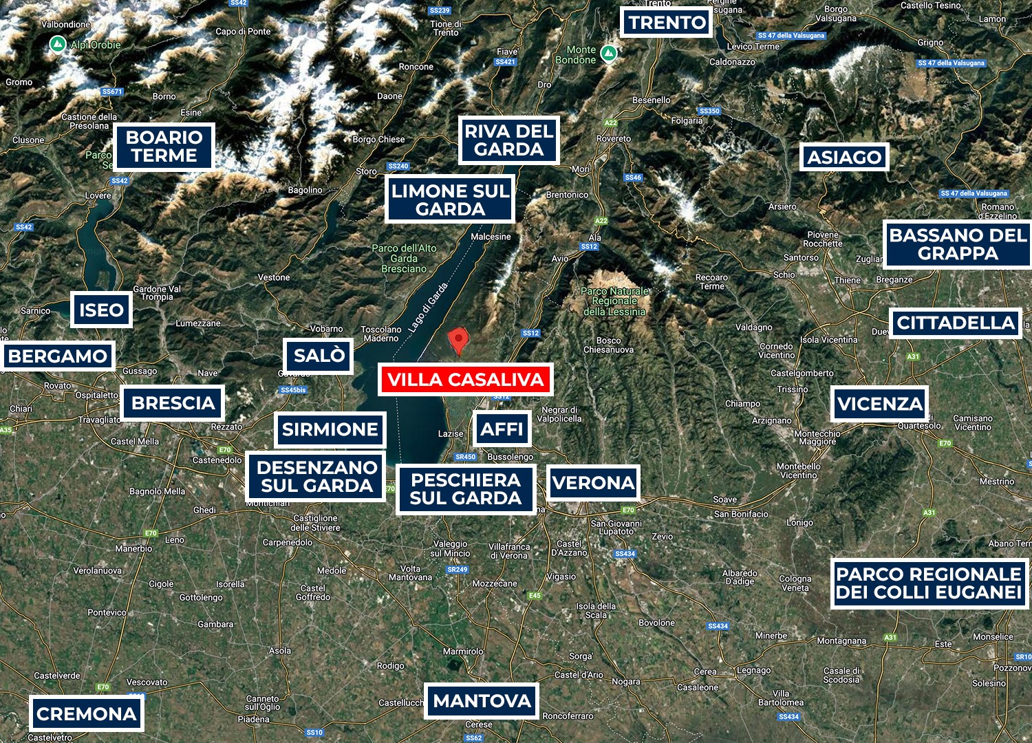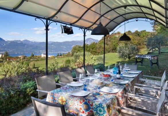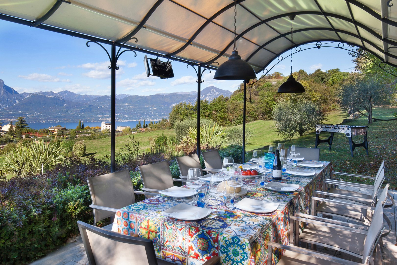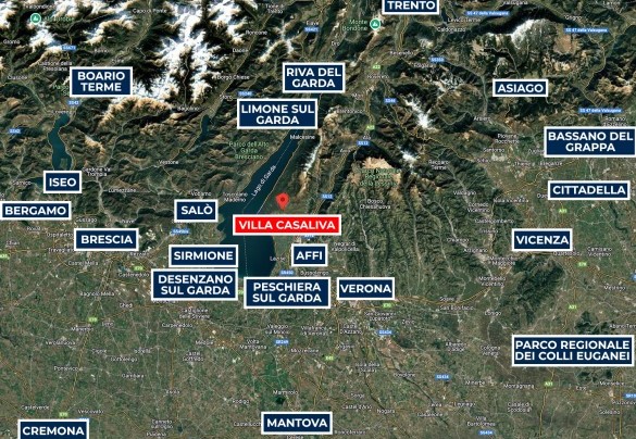 STRUTTURA PRIVATA (solo locazione). Villa Casaliva è immersa nel verde delle colline che circondano il Lago di Garda, in una posizione panoramica sopra i paesi di Torri del Benaco e Garda. Dalla villa si possono ammirare splendide vedute sul lago e sul paesaggio collinare circostante. La proprietà, di impianto moderno, si sviluppa su due piani non collegati internamente tra loro e offre ambienti ampi e luminosi. Entrambi i livelli dispongono di una grande zona giorno che si apre direttamente verso l’esterno, sui porticati attrezzati con area living e tavolo da pranzo. Il giardino, caratterizzato da aree verdi curate e dalla piscina, permette di godere dei paesaggi circostanti da ogni punto della proprietà, creando un’atmosfera di assoluta tranquillità.