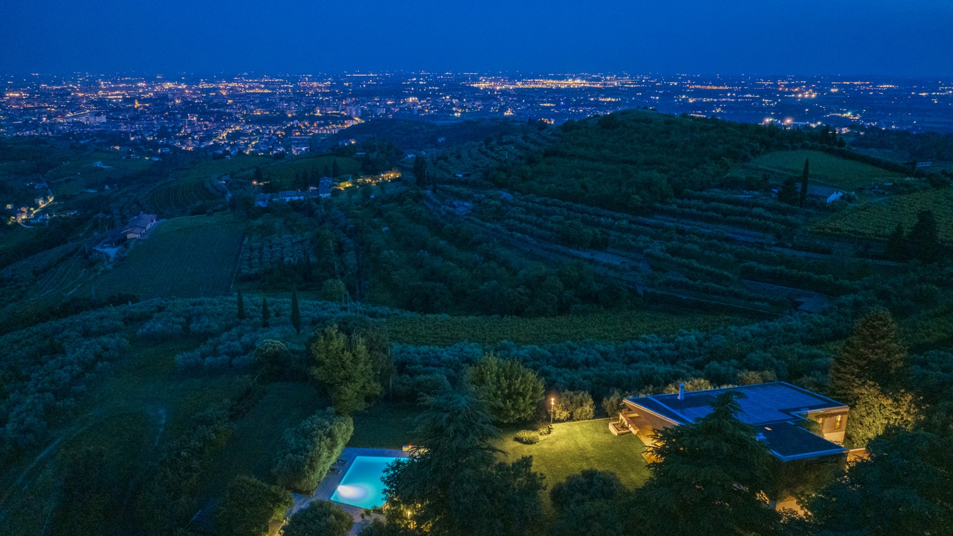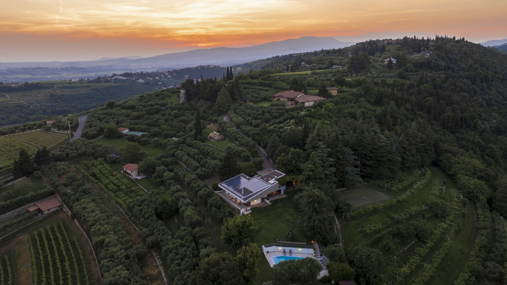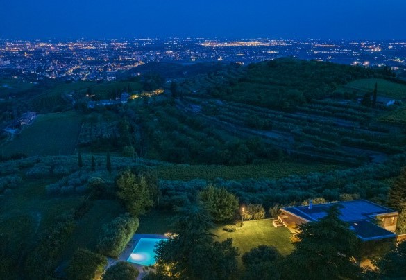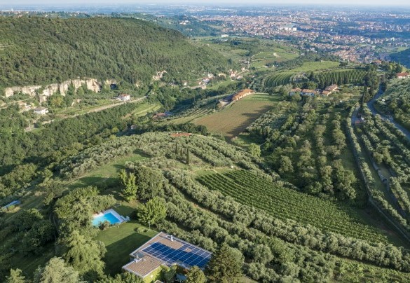 STRUTTURA RICETTIVA. Villa degli Ulivi si trova incastonata in un meraviglioso uliveto nel cuore della rinomata Valpolicella, sulle colline veronesi. Villa in stile moderno ed elegante, è caratterizzata da grandi vetrate che danno un senso di continuità tra interno ed esterno e creano dei veri e propri quadri che arredano e completano la zona giorno. Oltrepassato il cancello che delimita la proprietà, percorrendo una strada bianca in mezzo agli ulivi, ci si ritrova in un’ampia zona parcheggio da cui si raggiunge l’ingresso principale della proprietà. L’accogliente zona giorno con le sue ampie vetrate, da cui è possibile godere della vista panoramica sullo skyline di Verona, l’elegante terrazza arredata così come le aree esterne e la piscina, inseriti in un uliveto, fanno della proprietà la meta ideale per tutti coloro che vogliano trascorrere uno soggiorno all'insegna del relax in un contesto bucolico, anche se vicinissimo ad una delle città più belle d’Italia: Verona. Villa degli Ulivi è ubicata a meno di 10 km dal cuore della città; breve distanza anche del Lago di Garda e in una posizione ottimale anche per esplorare tutta la regione della Valpolicella, dove è possibile visitare numerose wineries e lasciarsi conquistare dai meravigliosi paesaggi e borghi medievali. In un piccolo appartamento con ingresso indipendente vivono i custodi che si occuperanno della manutenzione e della pulizia giornaliera del giardino.